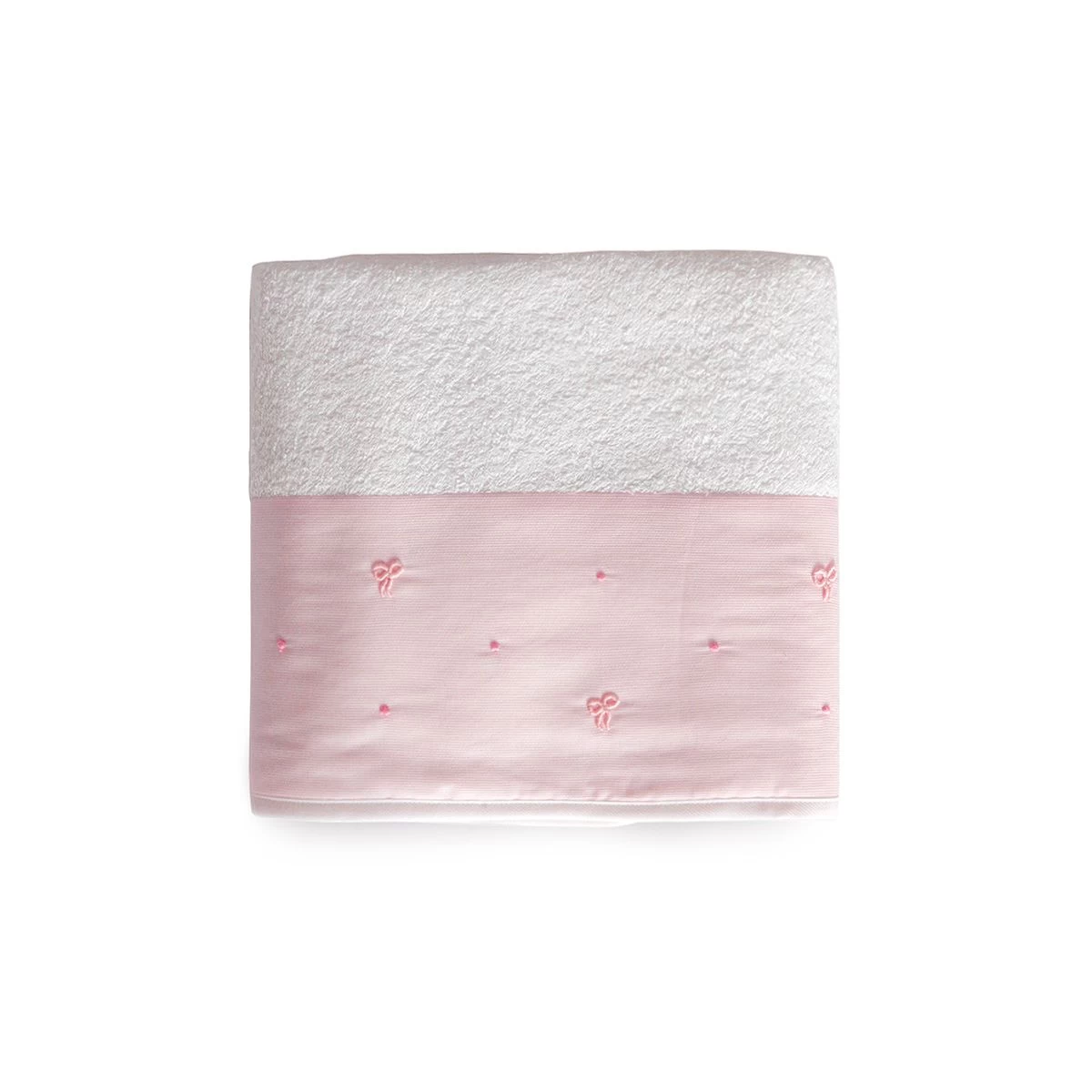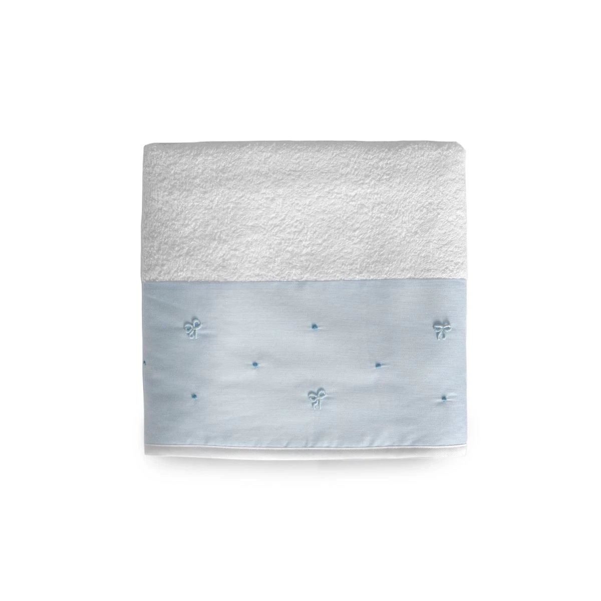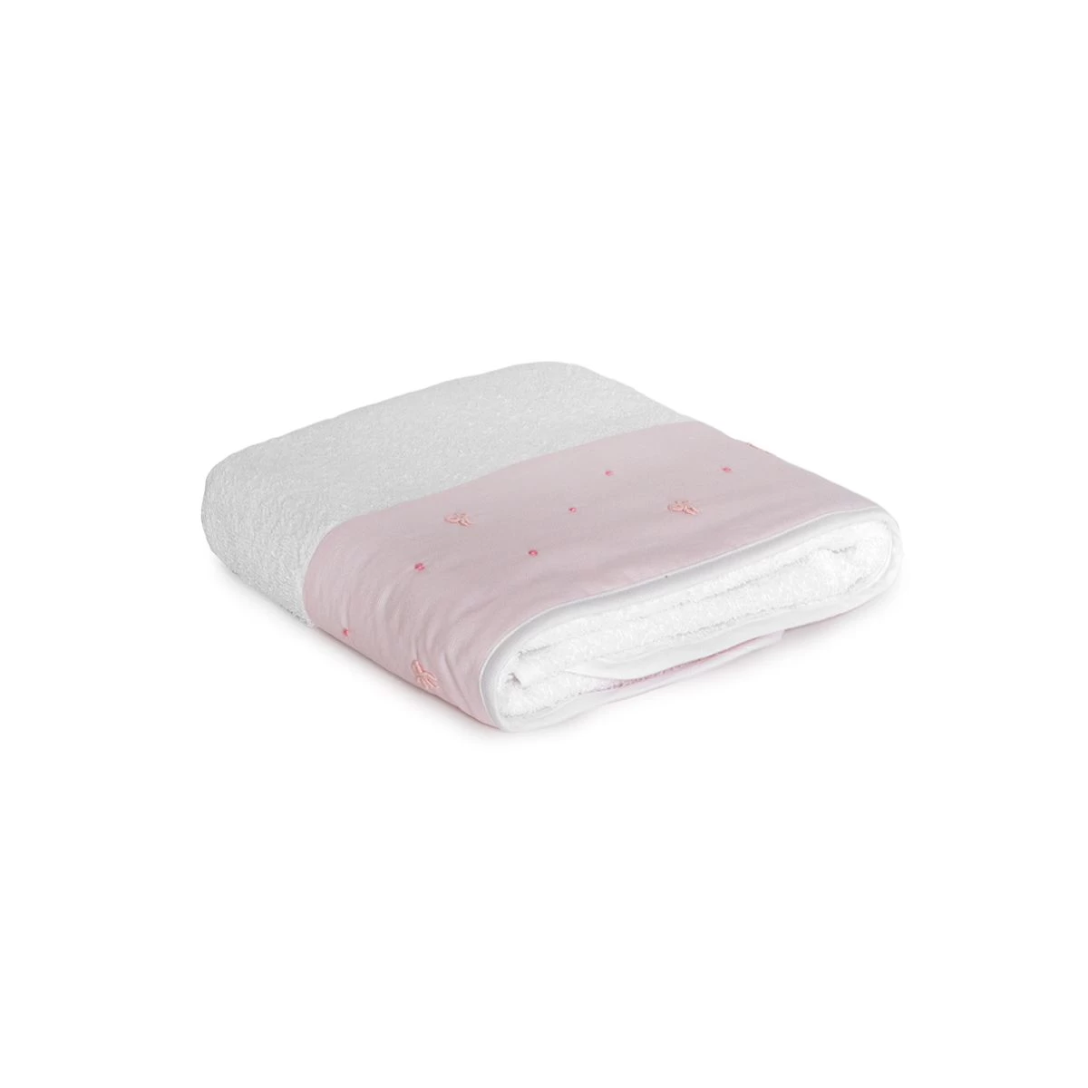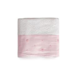 Qualità ed originalità sono le caratteristiche principali di quest’asciugamano in spugna di puro cotone. Delicati fiocchi ricamati a mano con punto vapore ricoprono la balza. Questo capo avvolgerà con delicatezza i piccoli di casa.