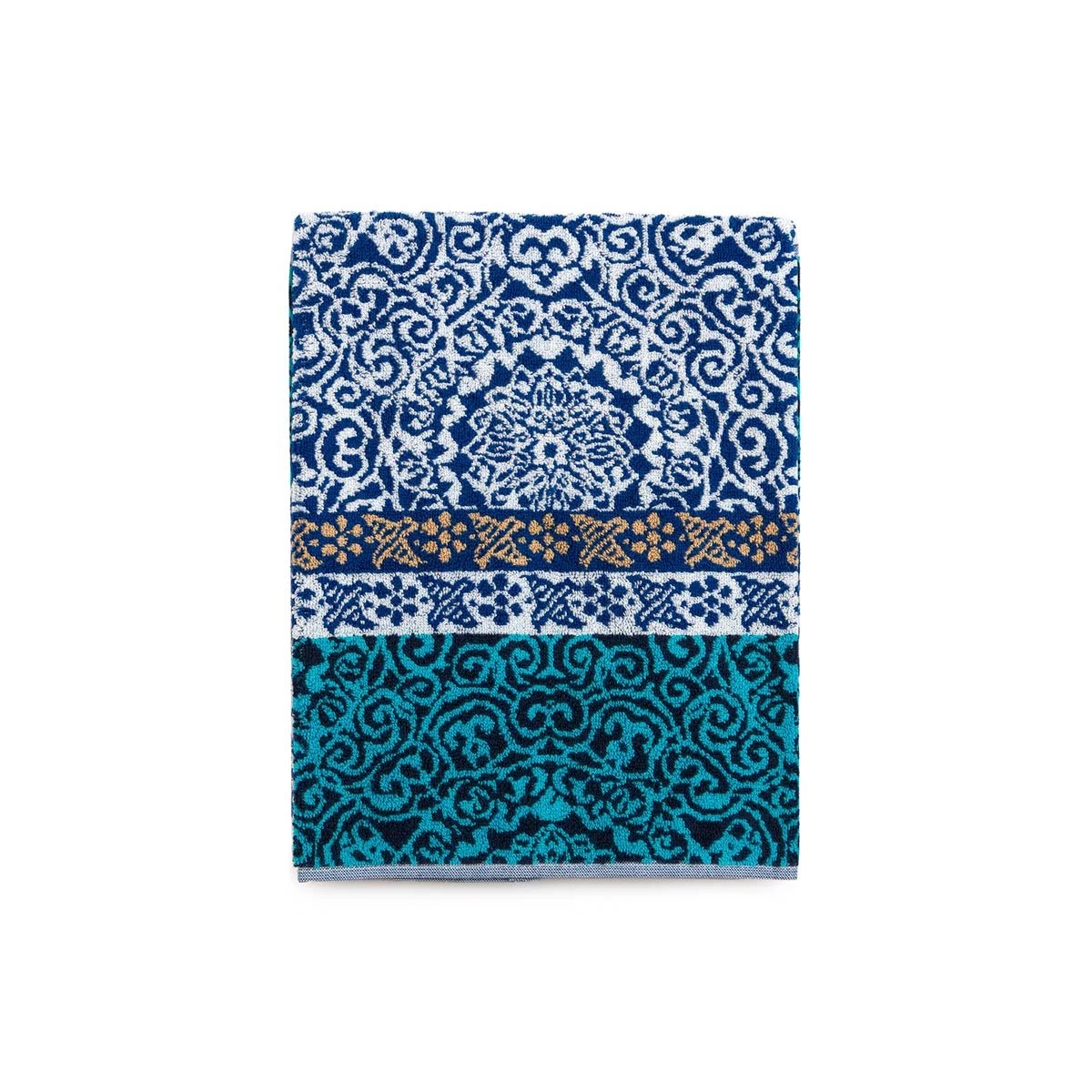 Artistico e colorato l’asciugamano ospite Arona di Bassetti, rende il bagno una piccola oasi dove prendersi cura di sè stessi.