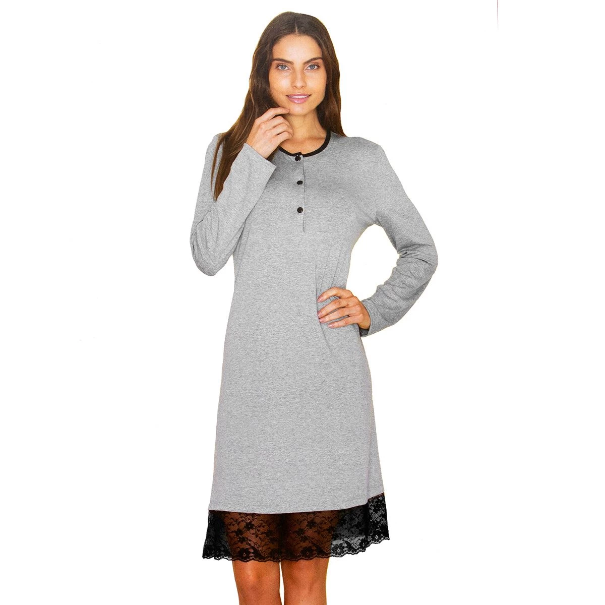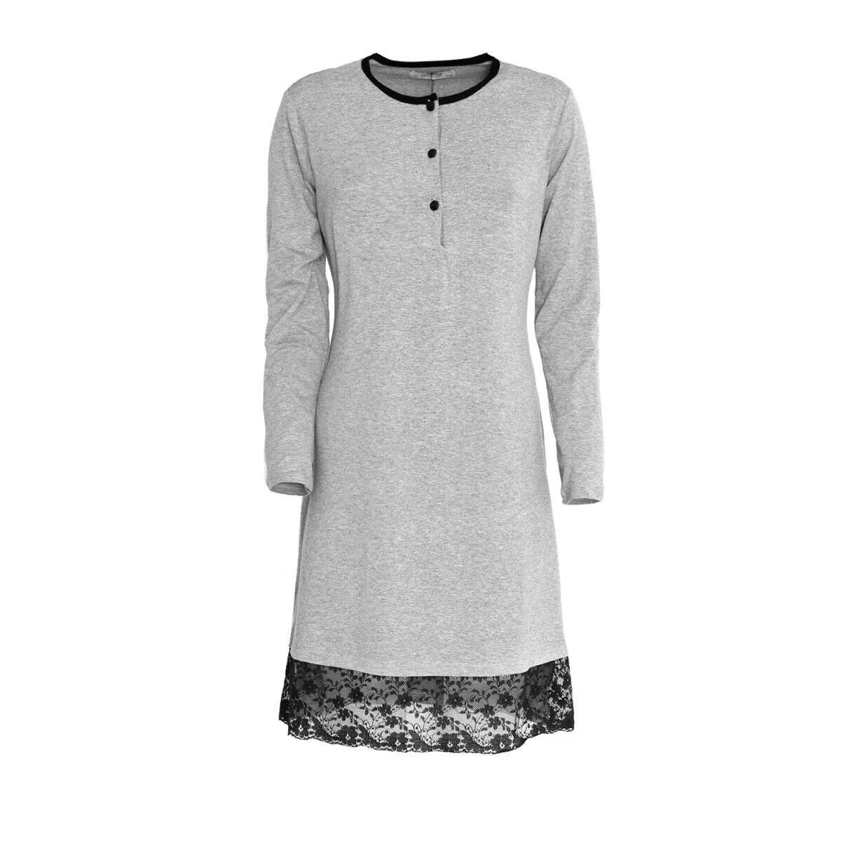 | Dettagli | La confezione contiene una camicia da notte a manica lunga Scollo serafino con bottoncini lucidi Balza decorativa inferiore in pizzo a contrasto Taglio dritto largo e morbido sui fianchi Lunghezza media al ginocchio Non segna la figura e nasconde le imperfezioni Confezionato in una scatola stampata |
