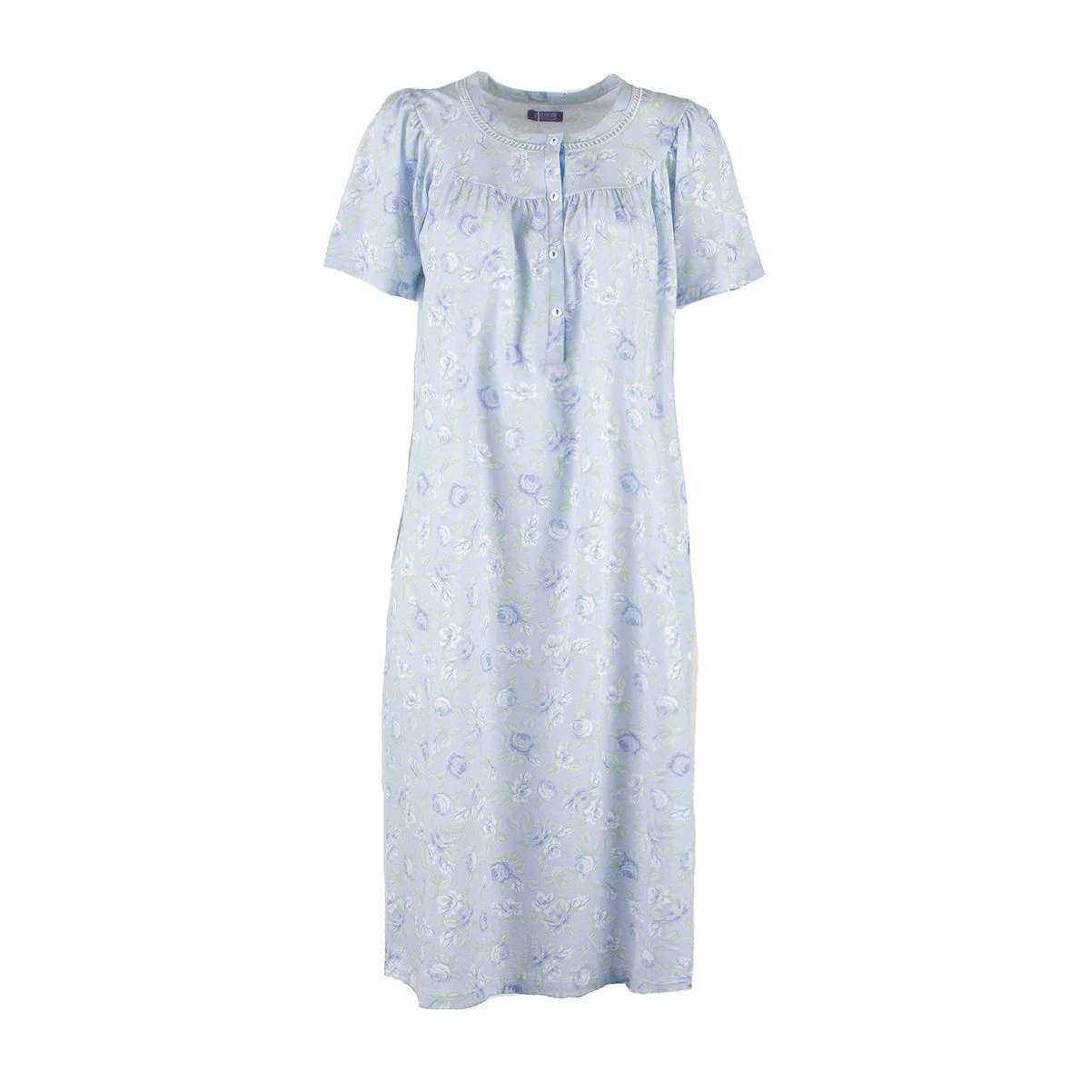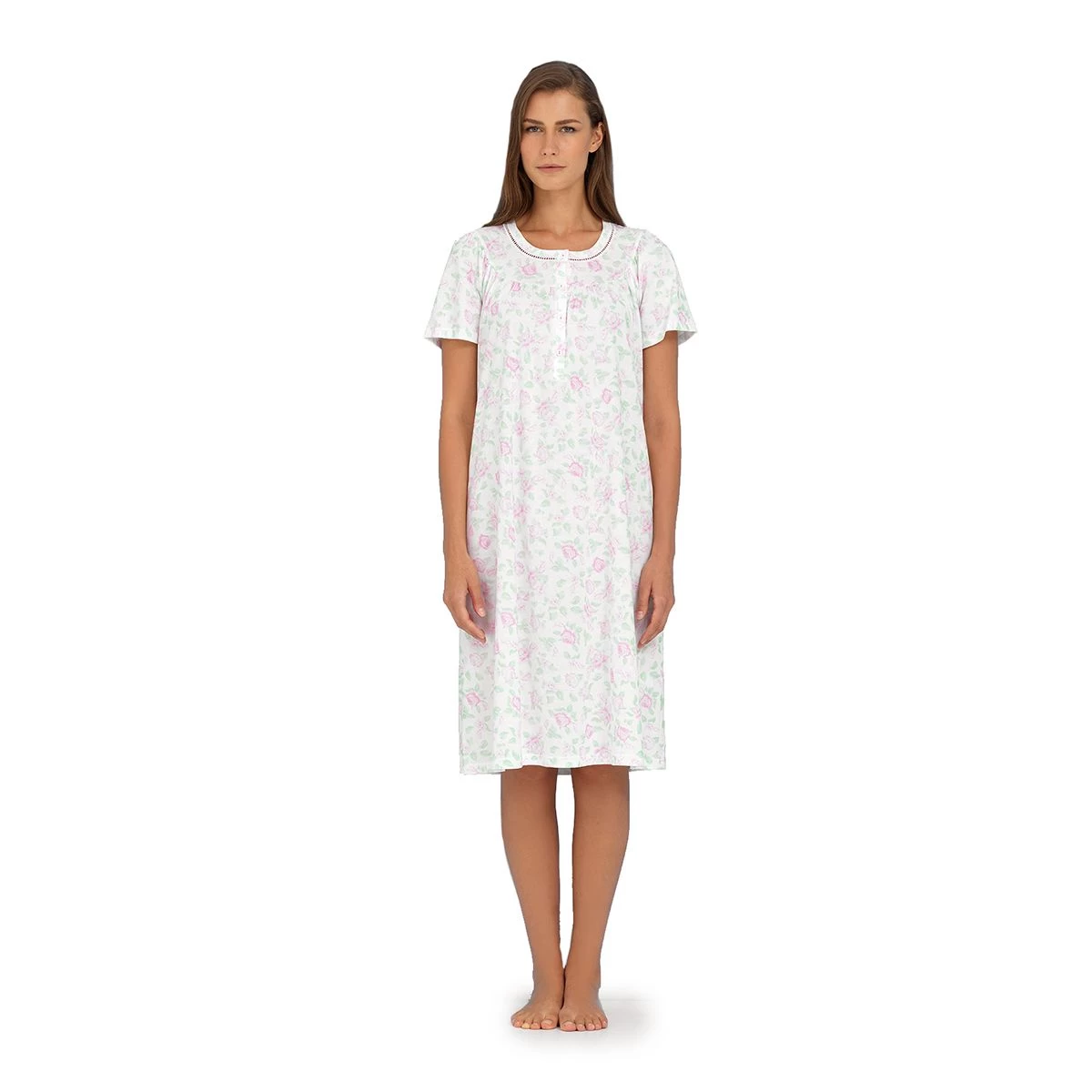 | Dettagli | La confezione contiene una camicia da notte estiva a mezza manica Motivo floreale Manica raglan che permette un ampio movimento della spalla e del braccio Girocollo serafino con bottoncini Modello pratico dotato di grande comfort per vestire tutte le taglie, anche quelle forti Lunghezza sopra il ginocchio Cotone fresco e leggero Confezionata in scatola |