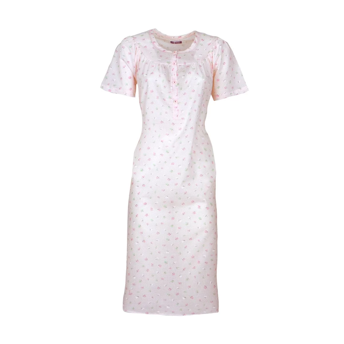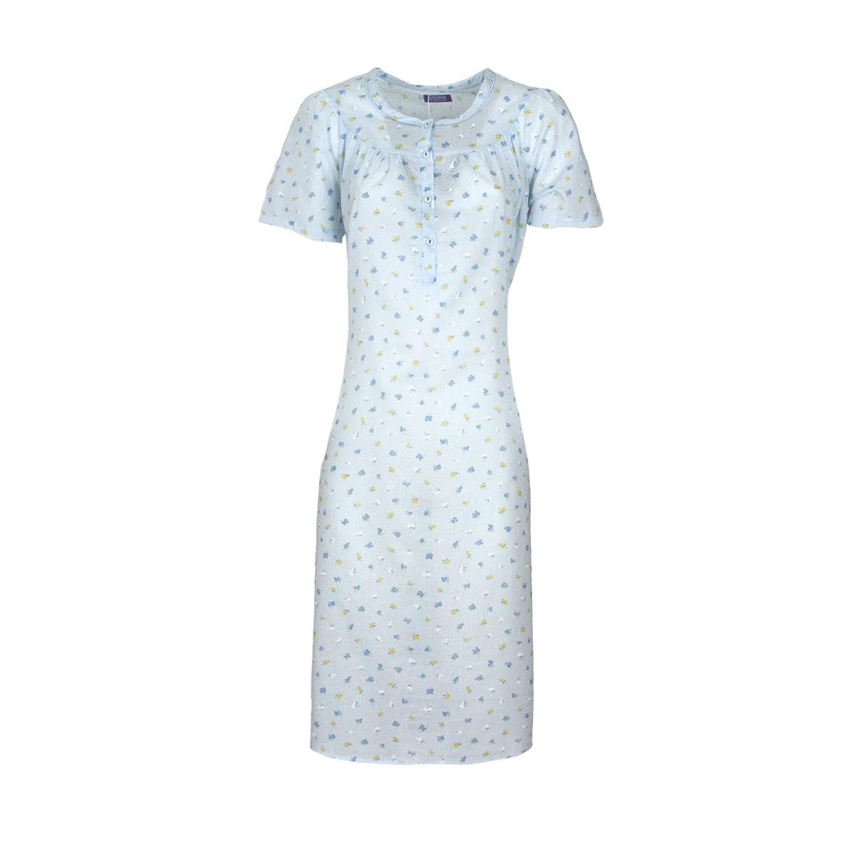 | Dettagli | La confezione contiene una camicia da notte per donna Motivo stampato con fiorellini colorati Girocollo serafino con bottoncini Taglio classico con pence sopra seno Manica raglan che permette un ampio movimento della spalla e del braccio Lunghezza media sotto al ginocchio Modello pratico e confortevole per vestire tutte le taglie, anche quelle forti Batista di puro cotone, fresco e leggero Capo premaman, adatto per donne incinte oppure per l’allattamento Confezionata in una scatola stampata |