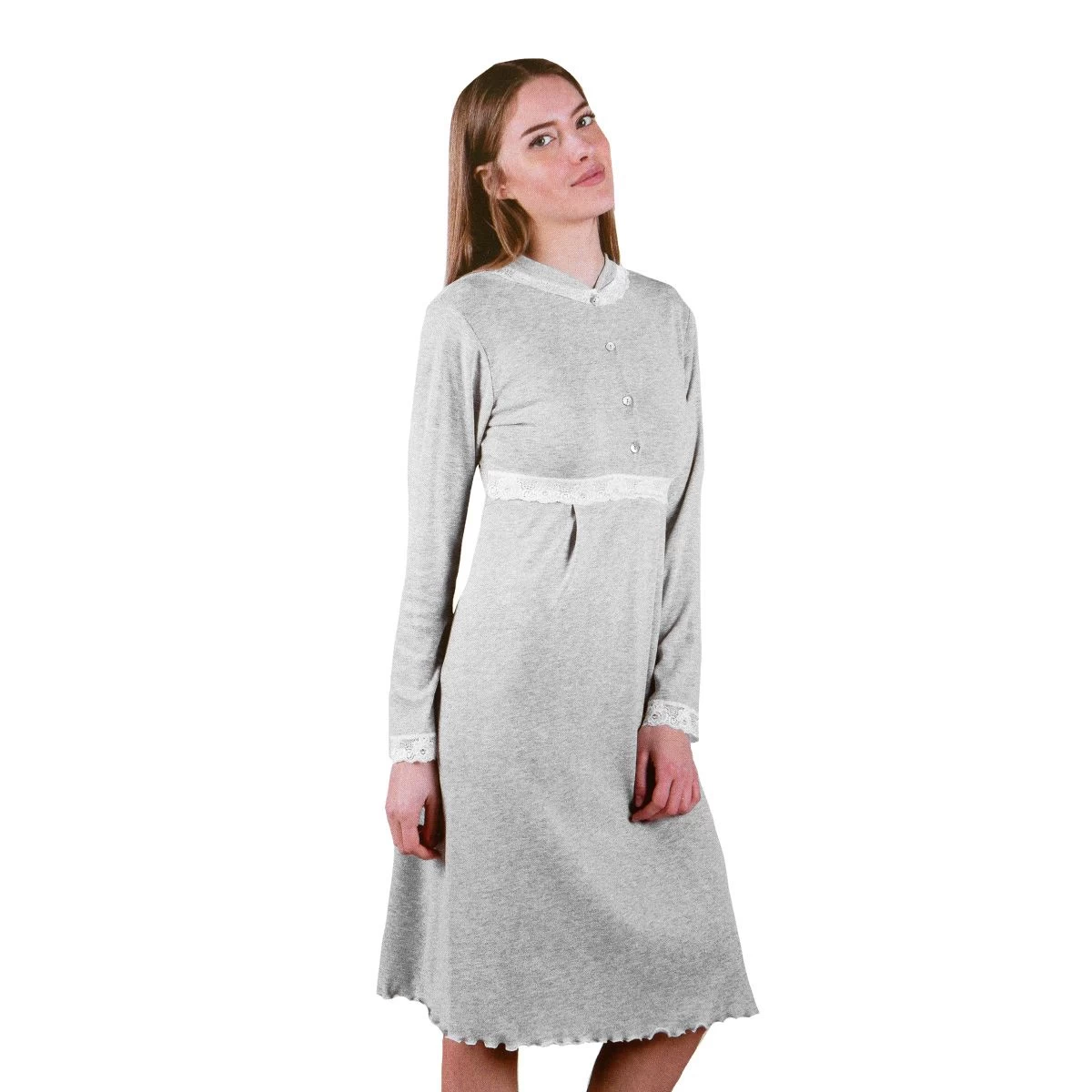 | Dettagli | La confezione contiene: Una camicia da notte a manica lunga Scollo alla coreana con bottoncini madreperlati Inserti in pizzo posti al collo, alle maniche e sotto al petto Stile impero a vita alta Taglio a campana largo e morbido sui fianchi Orlo della gonna smerlato Non segna la figura e nasconde le imperfezioni Ideale anche per donne in dolce attesa o per l’allattamento Confezionato in una scatola stampata Made in Italy |