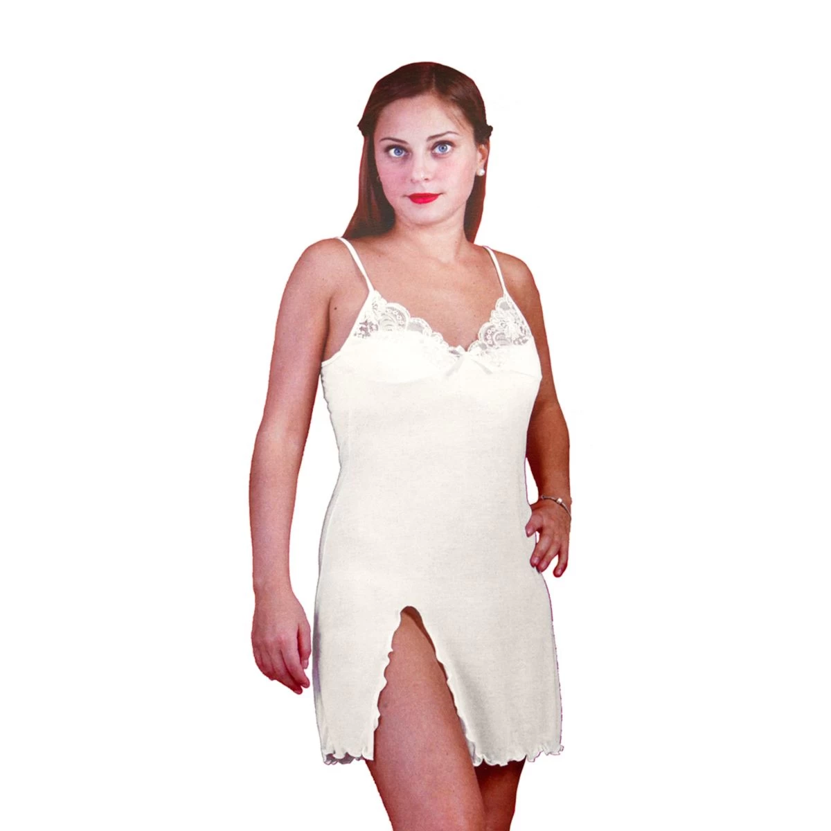 | Dettagli | La confezione contiene una camicia da notte con spalline strette in raso satinato Scollo a cuore con fiocchetto di passamaneria centrale Inserti decorativi in pizzo trasparente nella parte alta del petto Taglio sagomato che accompagna la figura senza segnarla e spacco laterale Orlo smerlato Lunghezza corta alla coscia Ideale per sposa Confezionato in una scatola stampata Made in Italy |