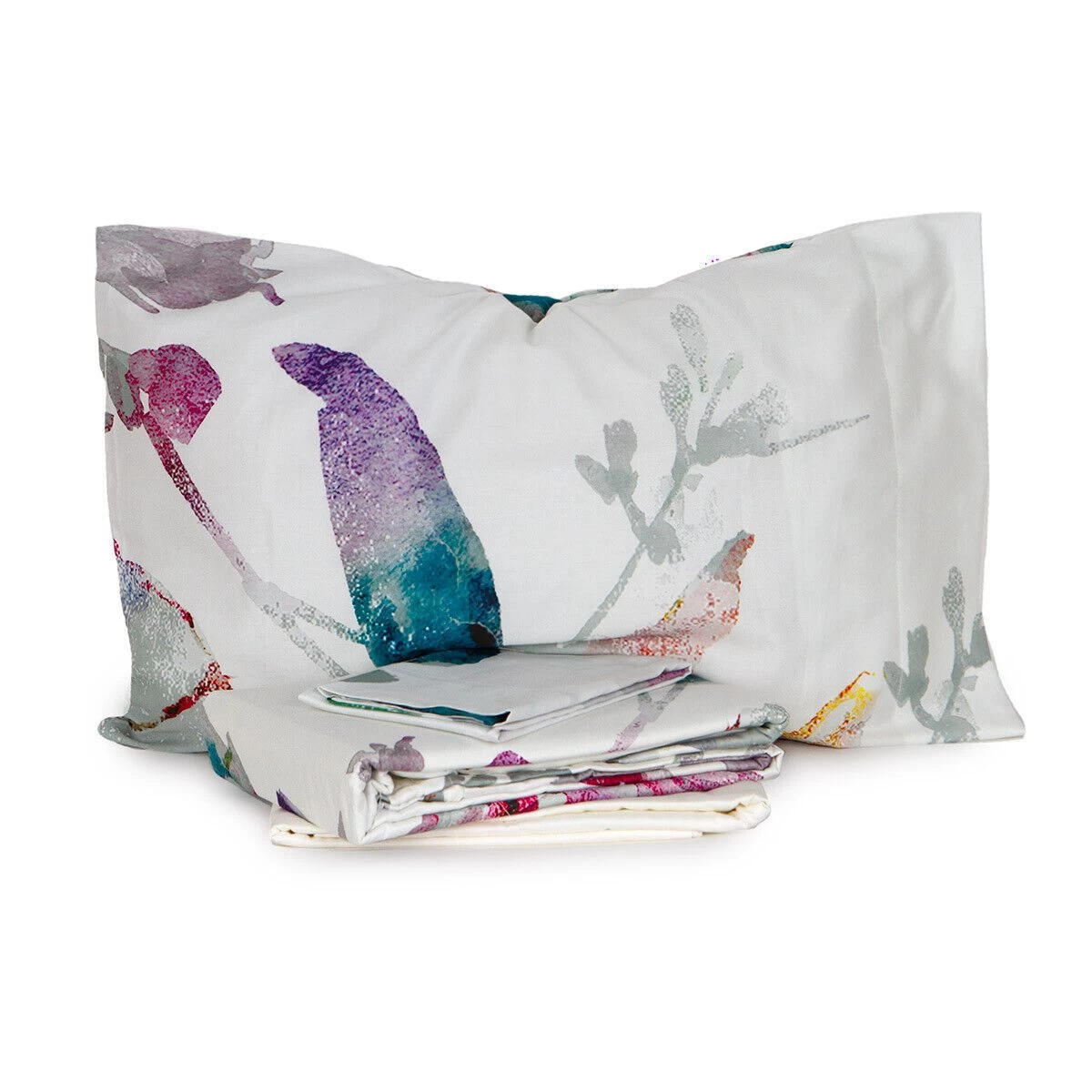 | Dettagli | La confezione contiene un completo copripiumino composto da: 1 sacco copripiumino 1 lenzuolo sotto con angoli 2 federe a sacchetto doubleface Reversibile: utilizzabile sia da un lato che dall’altro Stampa digitale con motivo floreale Soft touch (soffice al tatto) Colori solidi anche dopo ripetuti lavaggi 100% sostenibile Contenuto in una sacca in tela di cotone in coordinato |