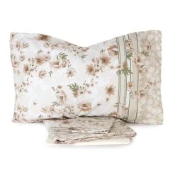 Raffinato e di classe, il completo lenzuola Brigitte è in pregiato percalle di puro cotone. Arreda la tua camera da letto con questa meraviglia per un estetica davvero sublime.