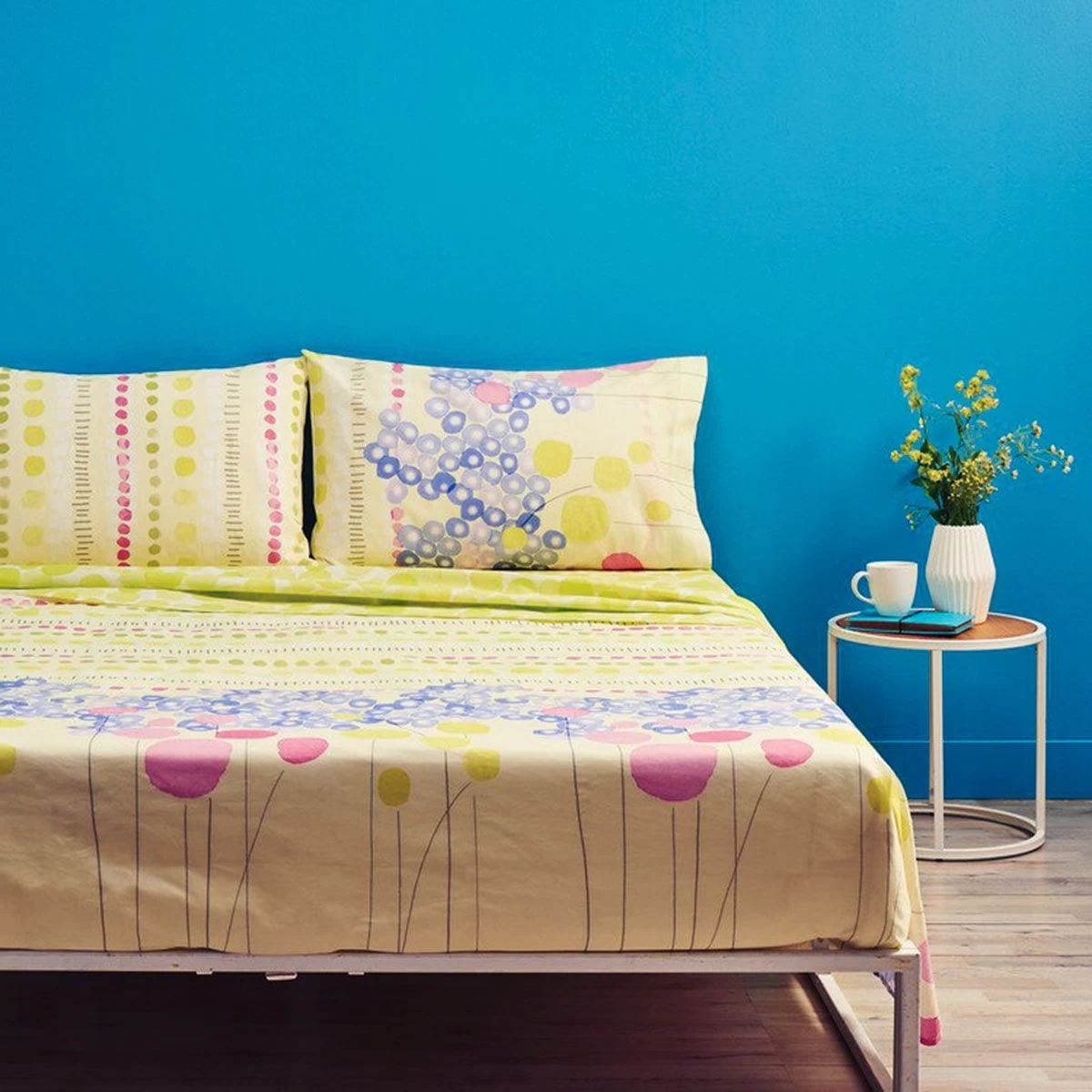 Il motivo floreale con acquerello comunica spensieratezza e libertà , una stampa estiva e colorata che Bassetti ha pensato per il completo lenzuola Blow Flower di questa collezione.