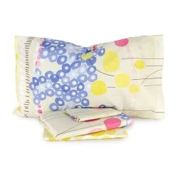 | Dimensioni | Singolo: Lenzuolo sopra: 160×280 cm Lenzuolo sotto con angoli: 90×200 cm Federa: 50×80 cm Una piazza e mezza: Matrimoniale: |