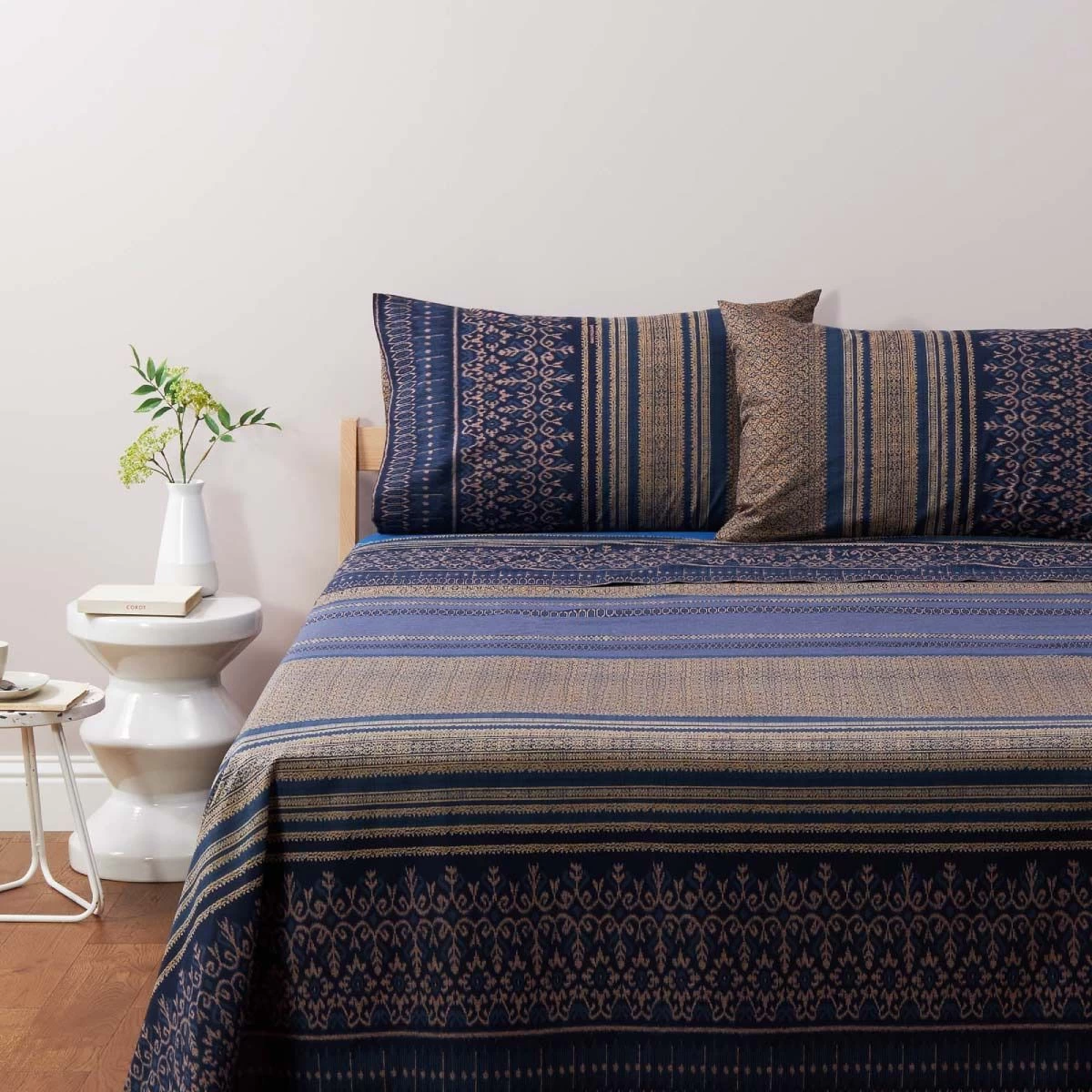 La qualità Bassetti si mantiene inalterata con il completo lenzuola copriletto Roccaraso, collezione Granfoulard. Il completo è realizzato con un prezioso tessuto in puro cotone che è rinifito eccellentemente dalla stampa con coloranti solidi che mantengono i colori inalterati nel tempo.