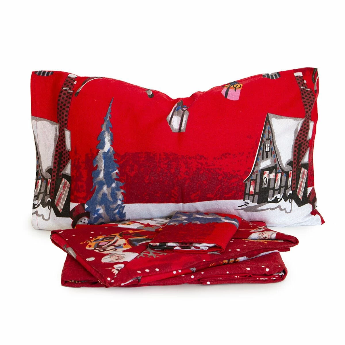 Per arredare la tua camera da letto con allegria durante le festività natalizie può ricorrere al completo lenzuola Rennes. Colorato e caldo è realizzato in flanella di policotone.