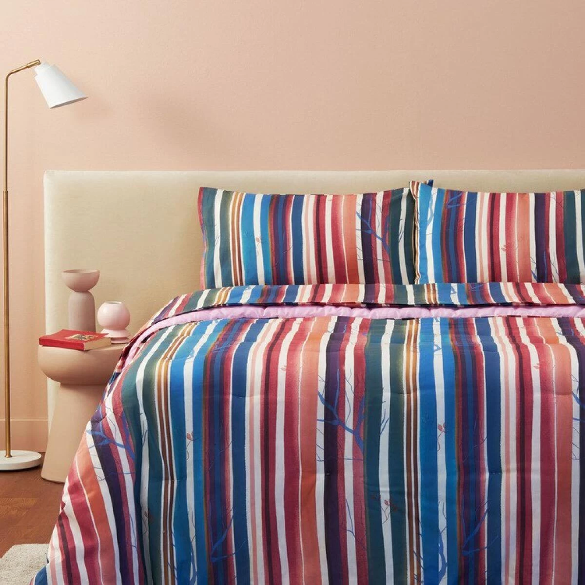 Dei rami che giocano a nascondino su uno sfondo ramage delicato, con un nsieme di colori a unirsi in un richiamo alla tonalità Mattone. Hide and Seek di Bassetti, realizzato in puro cotone, vivacizza l’ambiente e con la sua composizione garantisce comfort e benessere.
