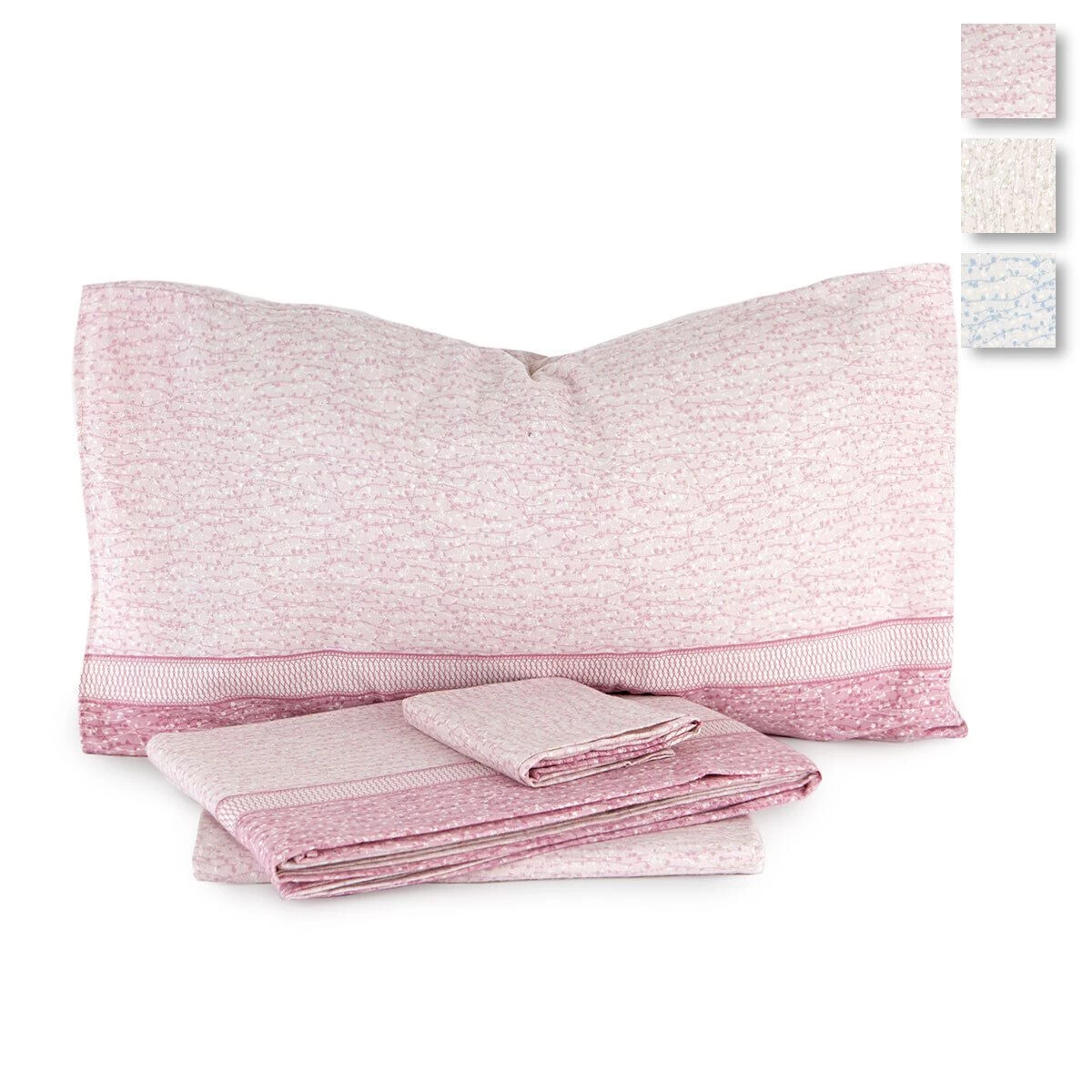 | Dimensioni | Singolo: Lenzuolo sopra: 150×280 cm Lenzuolo sotto con angoli: 90×200 cm Federa: 52×82 cm Una piazza e mezza: Matrimoniale: |