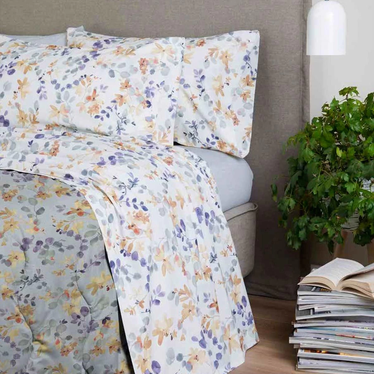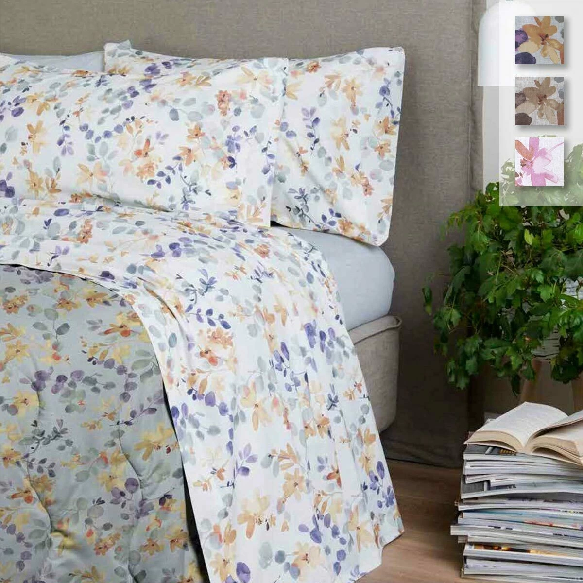 | Dettagli | La confezione contiene un completo lenzuola in flanella composto da: 1 lenzuolo sopra 1 lenzuolo sotto con angoli La dimensione per letto singolo e una piazza e mezza contiene 1 federa, quella per letto matrimoniale 2 federe Federe a sacchetto Stampa con motivo floreale Calda e morbida flanella di puro cotone da 60 fili/cmq Trattamento antipilling che evita la formazione di pelucchi Made in Italy |