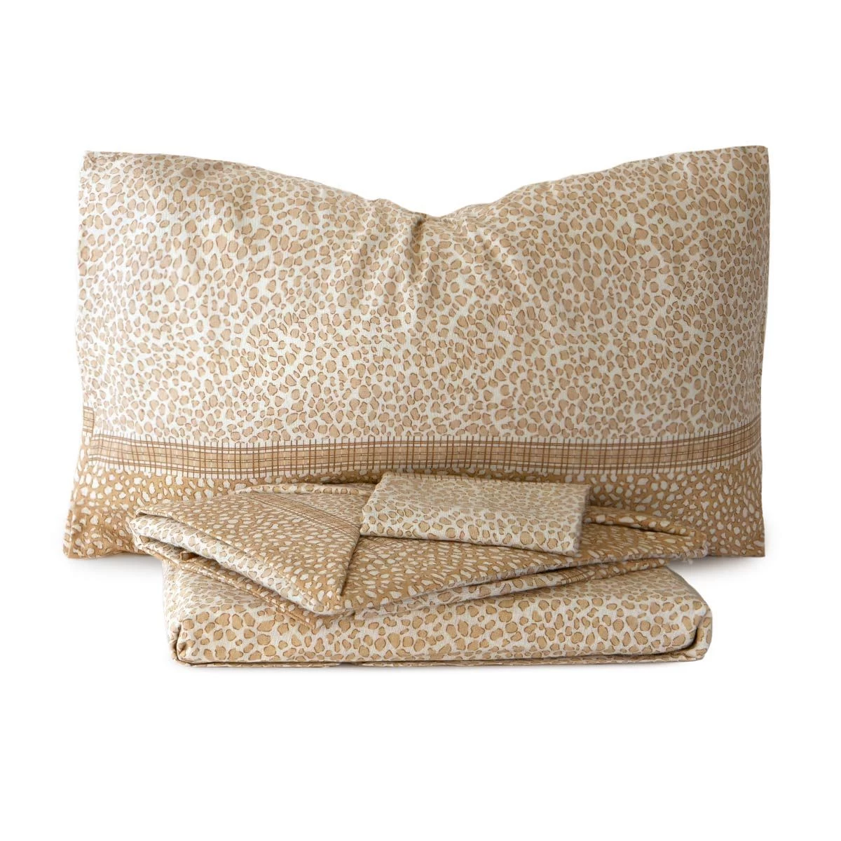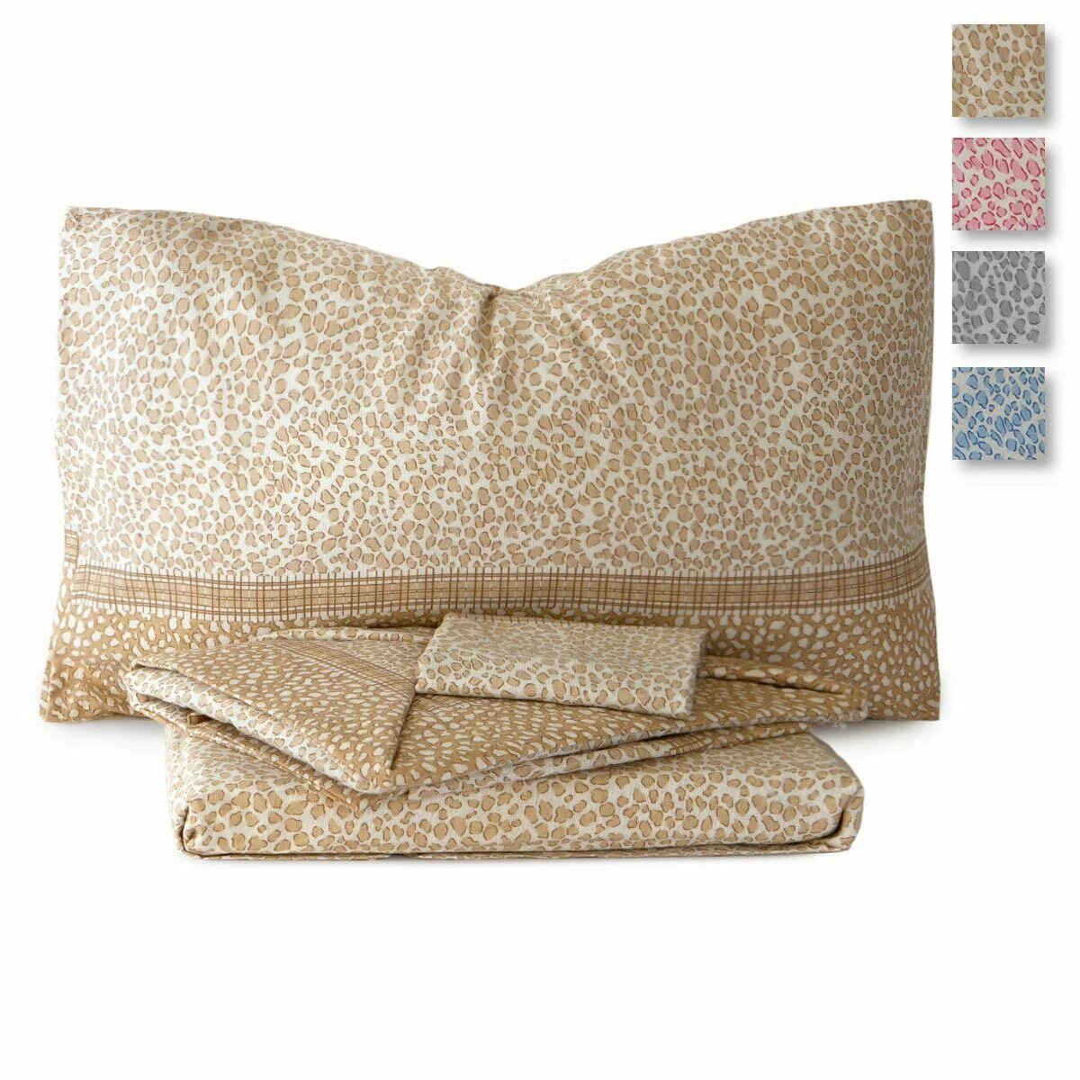 | Dettagli | La confezione contiene un completo lenzuola per letto matrimoniale composto da: 1 lenzuolo sopra 1 lenzuolo sotto con angoli La dimensione per letto singolo contiene una federa, quella per letto matrimoniale due federe Motivo maculato Misure maxi Per motivi tecnici le misure potrebbero variare di qualche centimetro La stampa delle federe potrebbe differire dall’immagine Prodotto di discreta qualità |