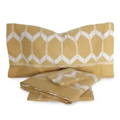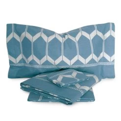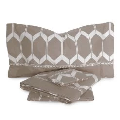 Il motivo geometrico del completo lenzuola Khistan di Biancaluna rende la camera da letto uno spazio modelo ed essenziale dove le linee sono protagoniste. Disponibile in tre varianti di colore molto vigranti e pigmentate sono morbide e soffici anche al tatto.