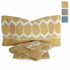 Il motivo geometrico del completo lenzuola Khistan di Biancaluna rende la camera da letto uno spazio modelo ed essenziale dove le linee sono protagoniste. Disponibile in tre varianti di colore molto vigranti e pigmentate sono morbide e soffici anche al tatto.