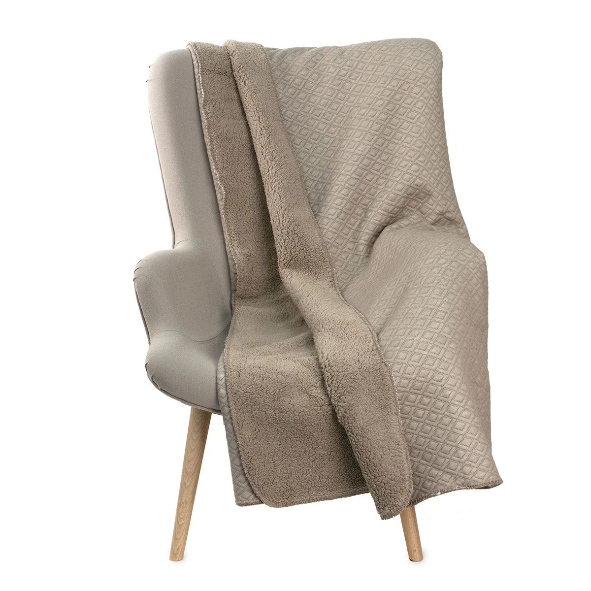 | Dettagli | La confezione contiene un plaid in piquet e sherpa Tessuto superiore in piquet di poliestere da 220 gr/mq Tessuto inferiore in sherpa super soft da 280 gr/mq Peso: 500 gr/mq Tinta unita, lavorazione jaquard con motivo romboidale Disegnato e progettato in Italia |
