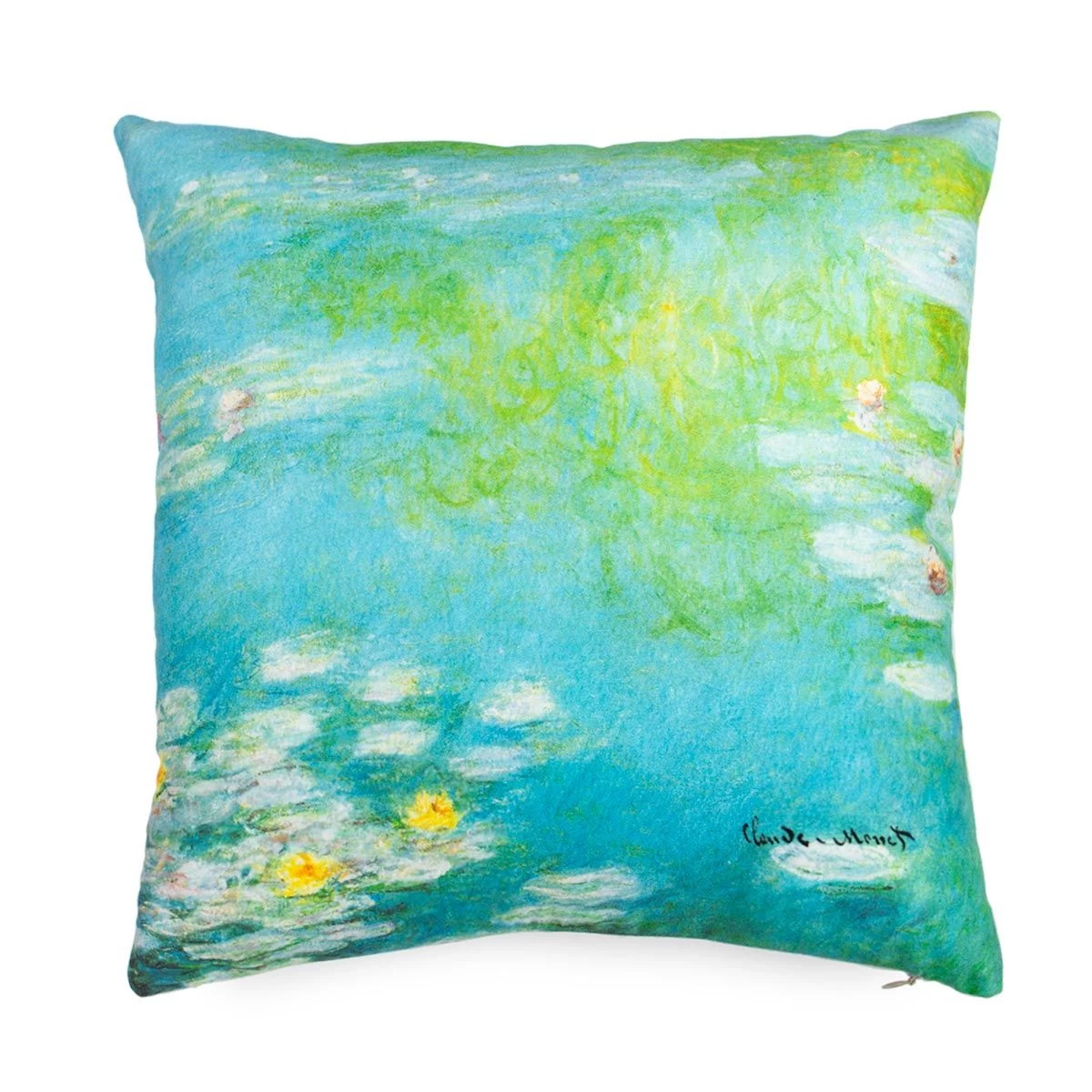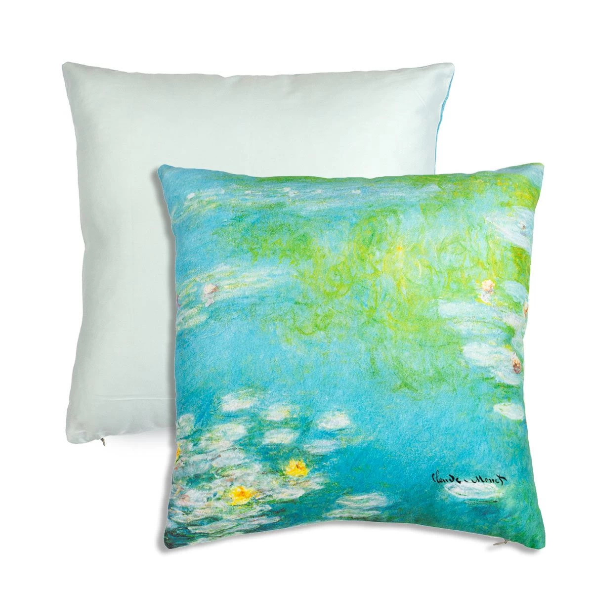 | Dettagli | La confezione contiene due cuscini arredo Forma quadrata Stampa digitale in alta definizione del quadro “Ninfee a Giverny” Retro in tinta unita Imbottitura inclusa Made in Italy |