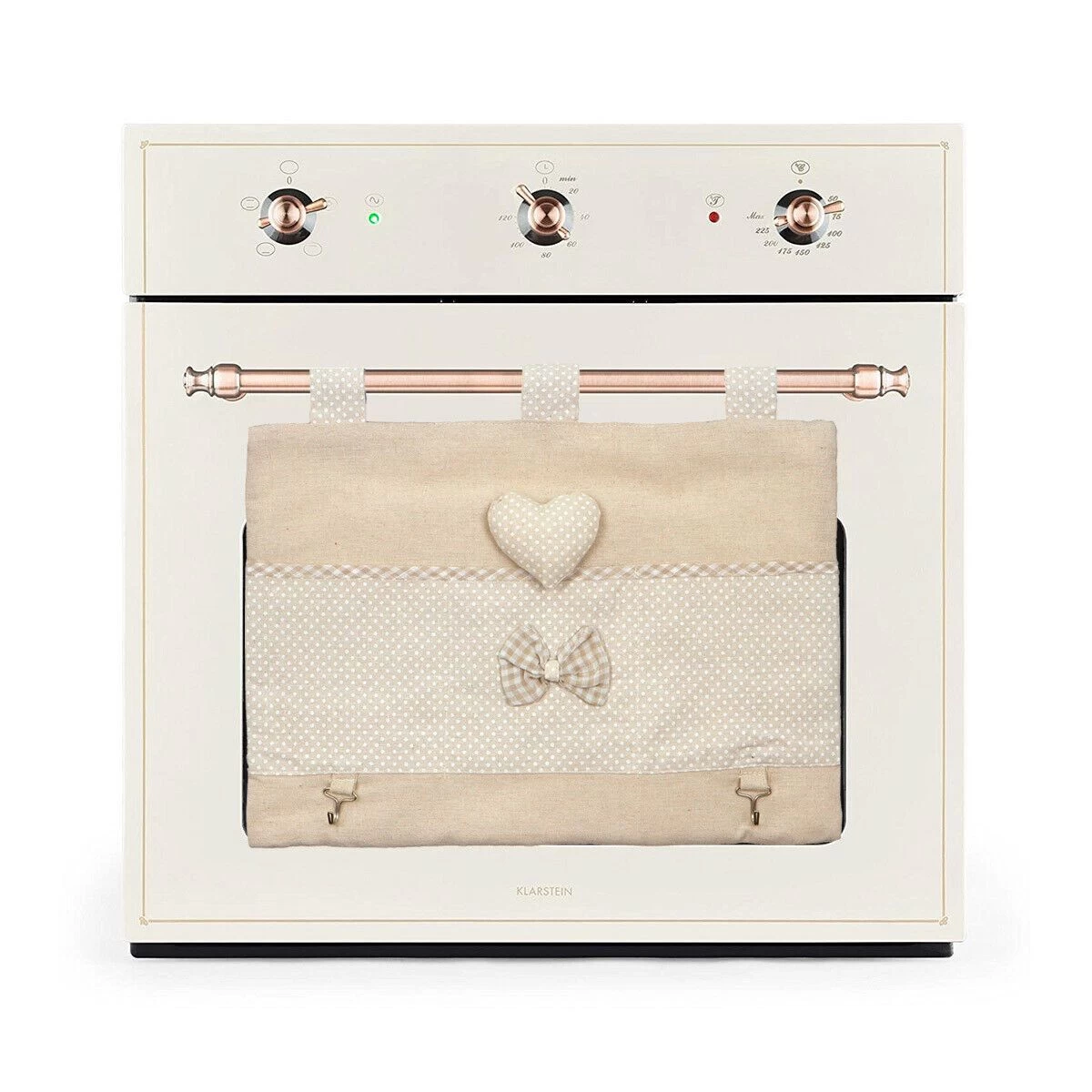 | Dettagli | La confezione contiene un copriforno Asole con velcro a strappo che permette una facile applicazione Dotato di due ganci in metallo e due tasche anteriori Cuore e fiocco applicati Motivo country con quadretti e pois |