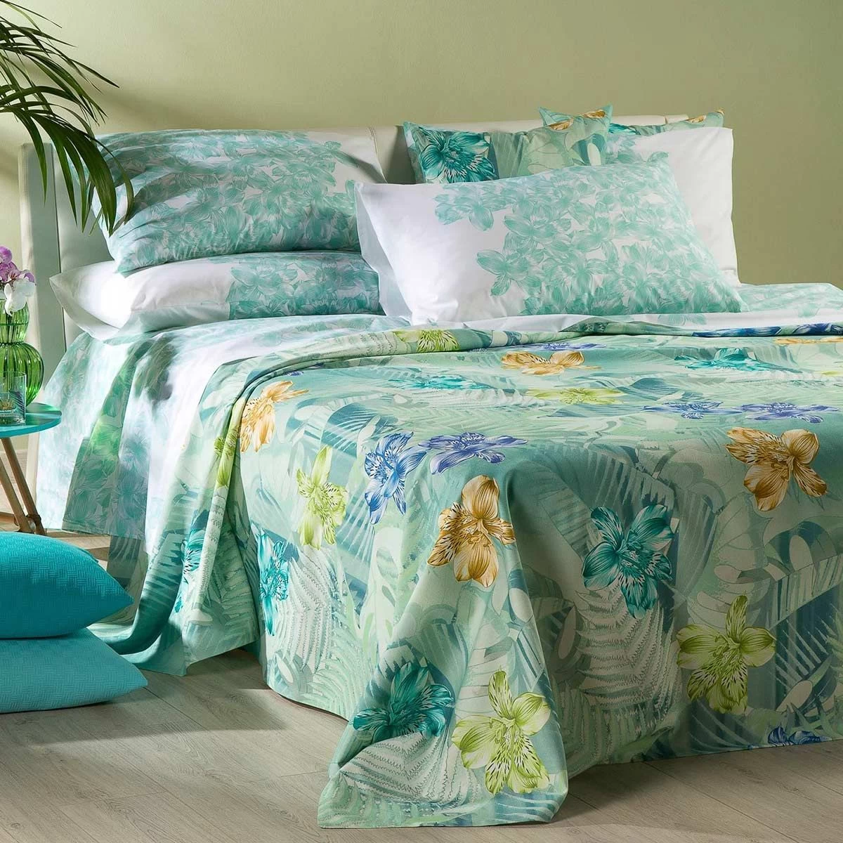 Il copriletto Orchidee firmato Caleffi trasformerà la camera da letto in un oasi di calma e relax, grazie al suo motivo floreale ed ai dettagli in stile tropicale, stampati digitalmente con colori tenui e piacevoli alla vista.