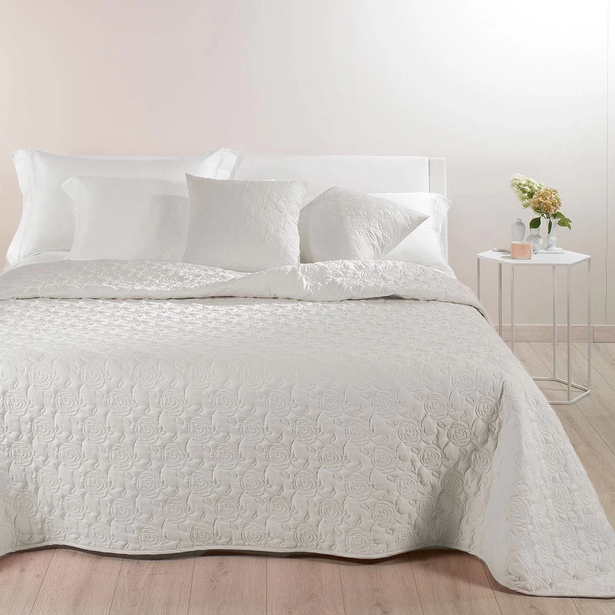 Il copriletto Grazia con il suo motivo floreale delicato e romantico darà un tocco di vita alla camera da letto, arredandola con sobrietà . Ideale per chi ama la semplicità ma al tempo stesso non rinuncia alle novità ed alla cura dei dettagli.