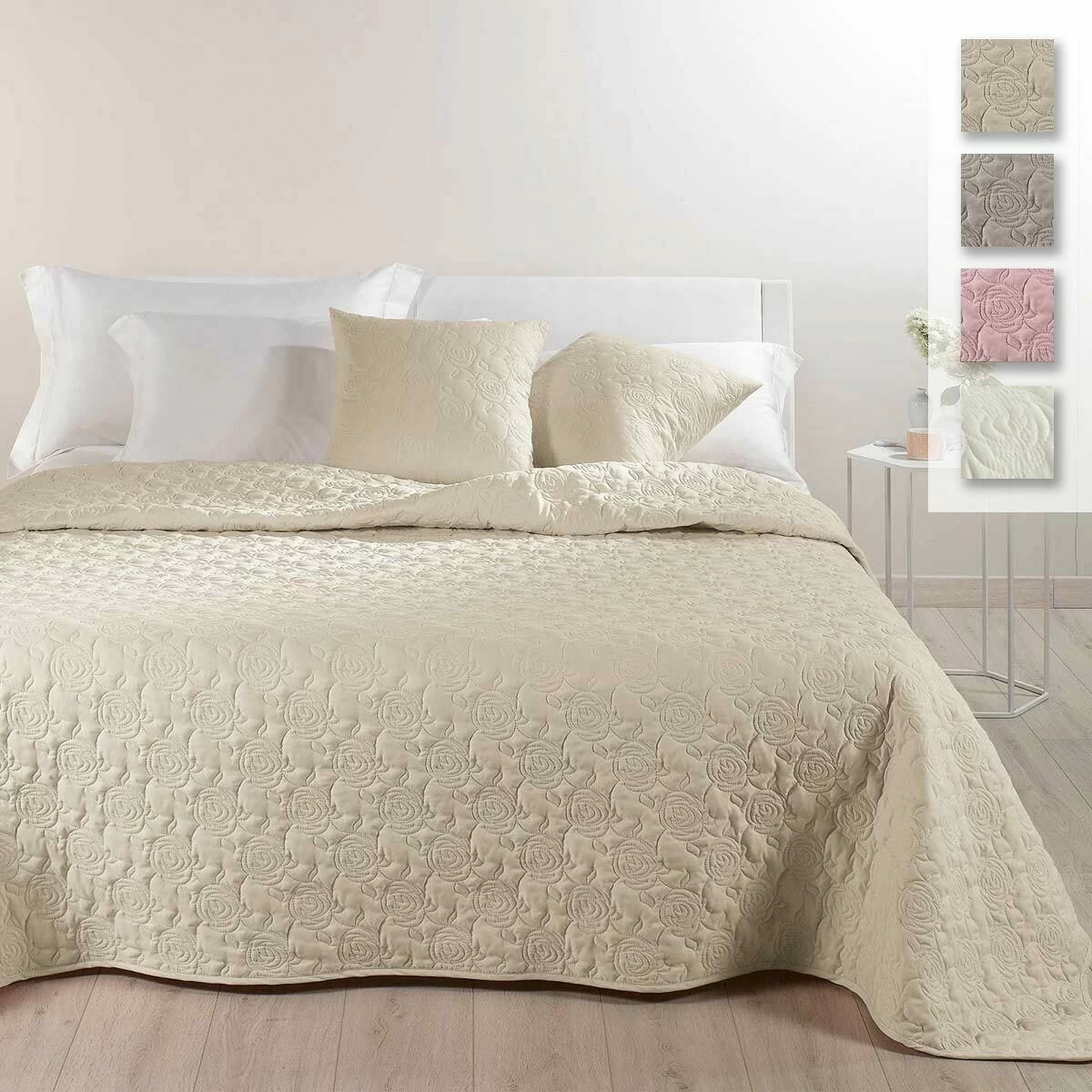 | Dettagli | La confezione contiene un copriletto trapuntato Motivo floreale Trapuntatura a forma di rose Imbottitura da 80 gr/mq Ideale per la primavera e l’autunno ECO COLOR coloranti ecologici certificati Imbottitura anallergica e altamente igienica Made in Italy |