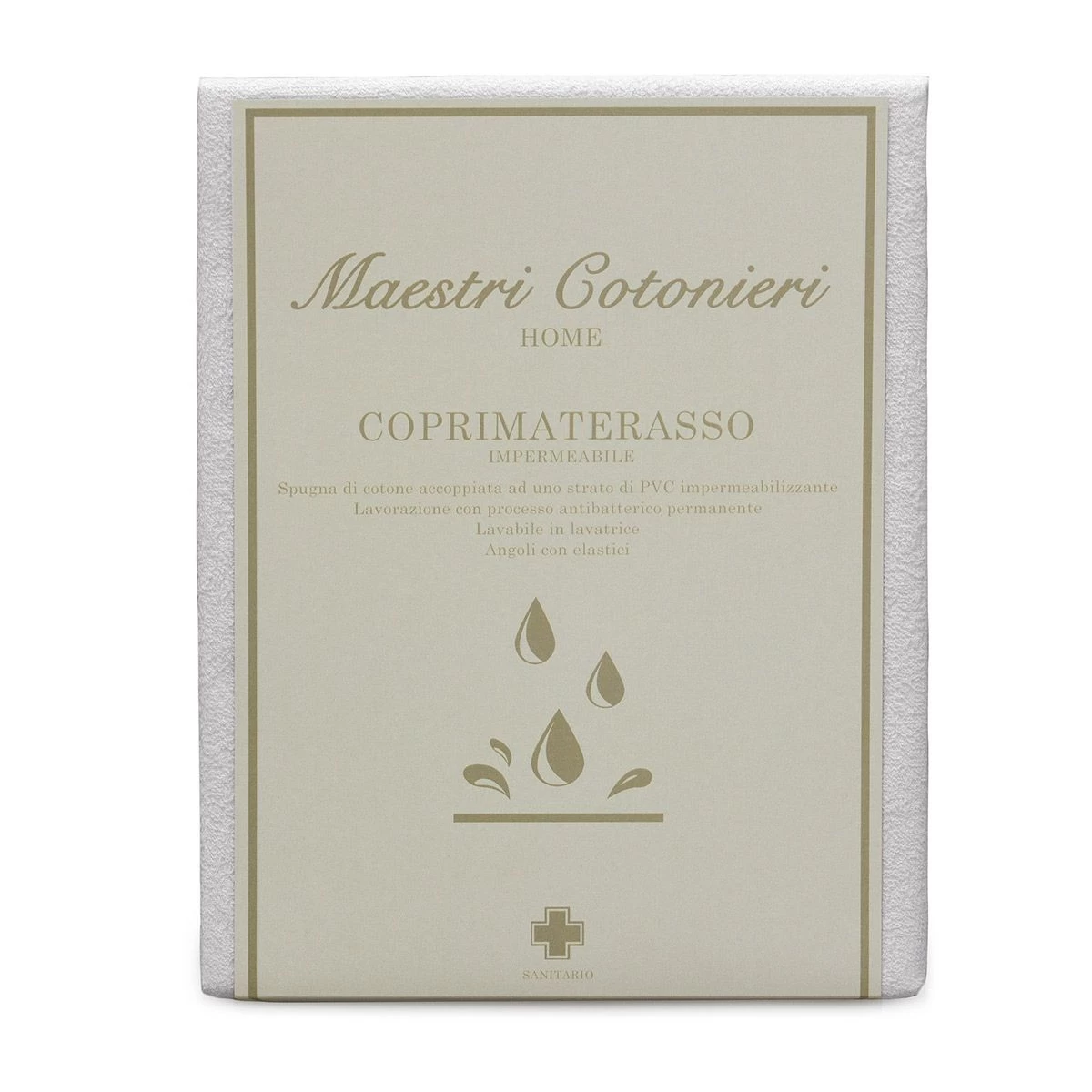 Il coprimaterasso ha una funzione molto importante: applicato direttamente al materasso, lo protegge da polvere, batteri, sudore o altre sostanze che potrebbero penetrare e rovinarlo. Il coprimaterasso sanitario di Maestri Cotonieri ha la parte superiore in spugna a riccio di puro cotone, e la base in PVC impermeabilizzante. Durante la lavorazione è stato effettuato un processo antibatterico permanente.