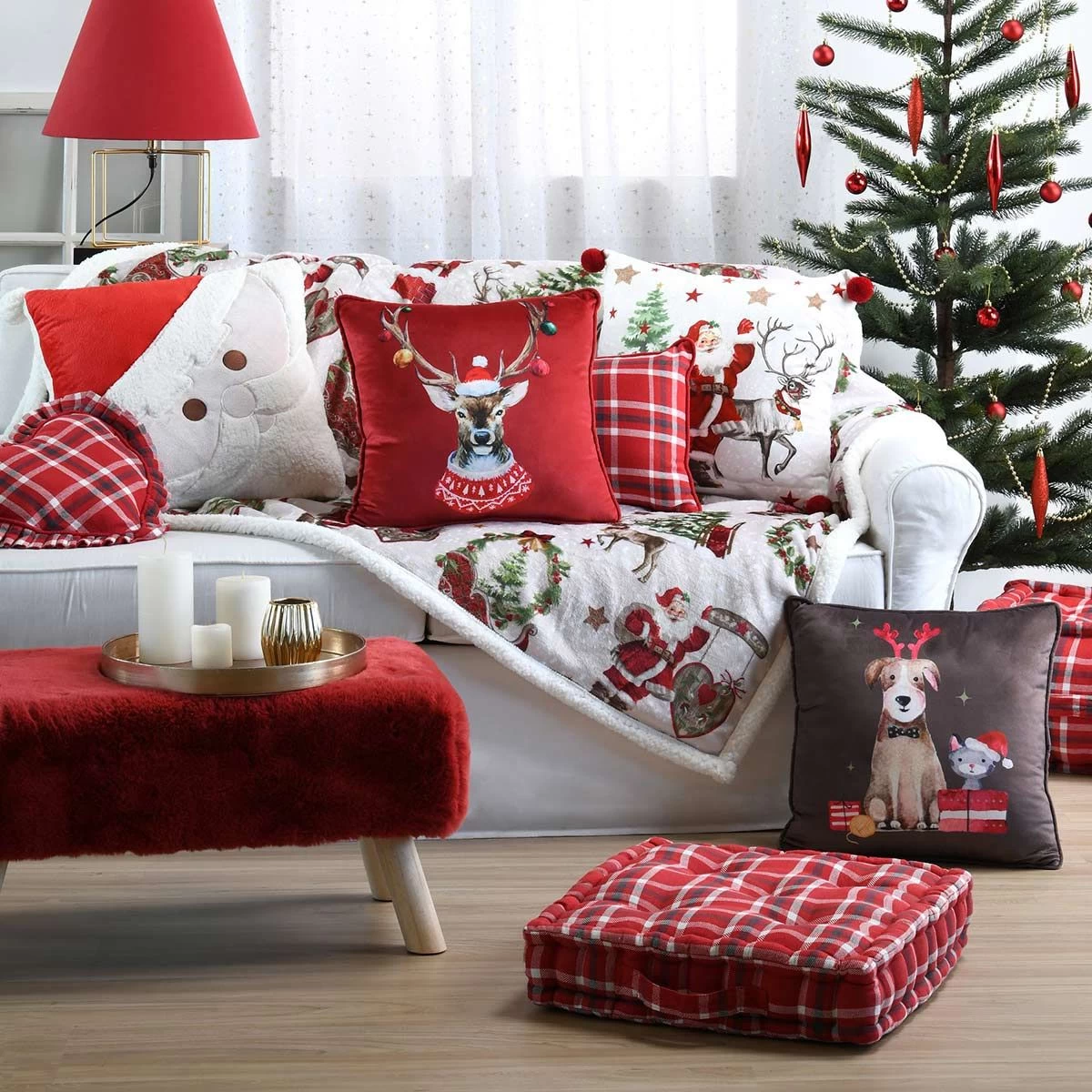 Lo spirito del natale è pronto a rendere magica la tua casa con questo cuscino arredo Joyeux. Con la sua stampa digitale che raffigura un amorevole cagnolino in compagnia di un dolce gattino darà un tocco magico alle tue feste.