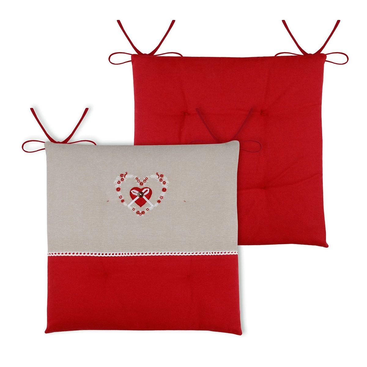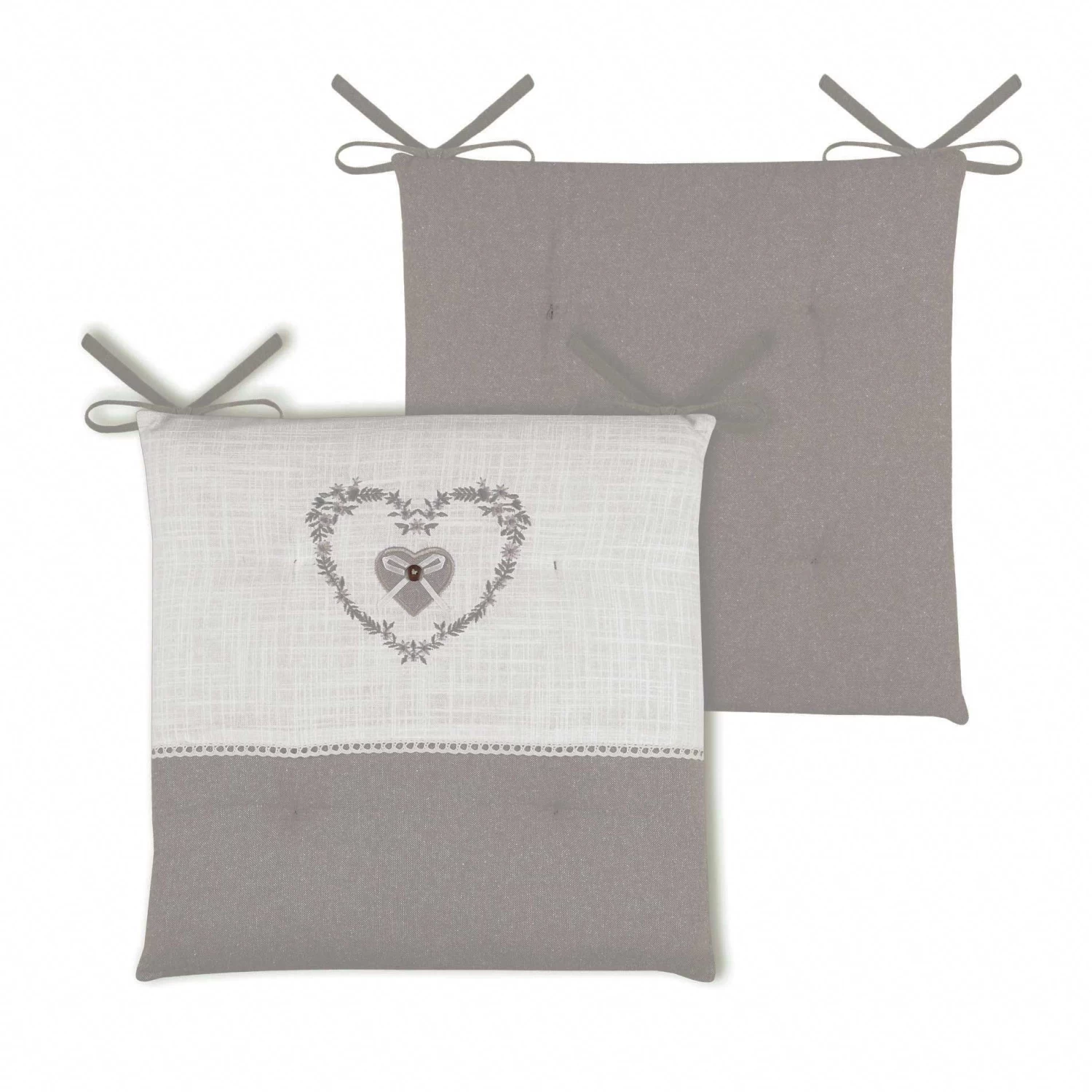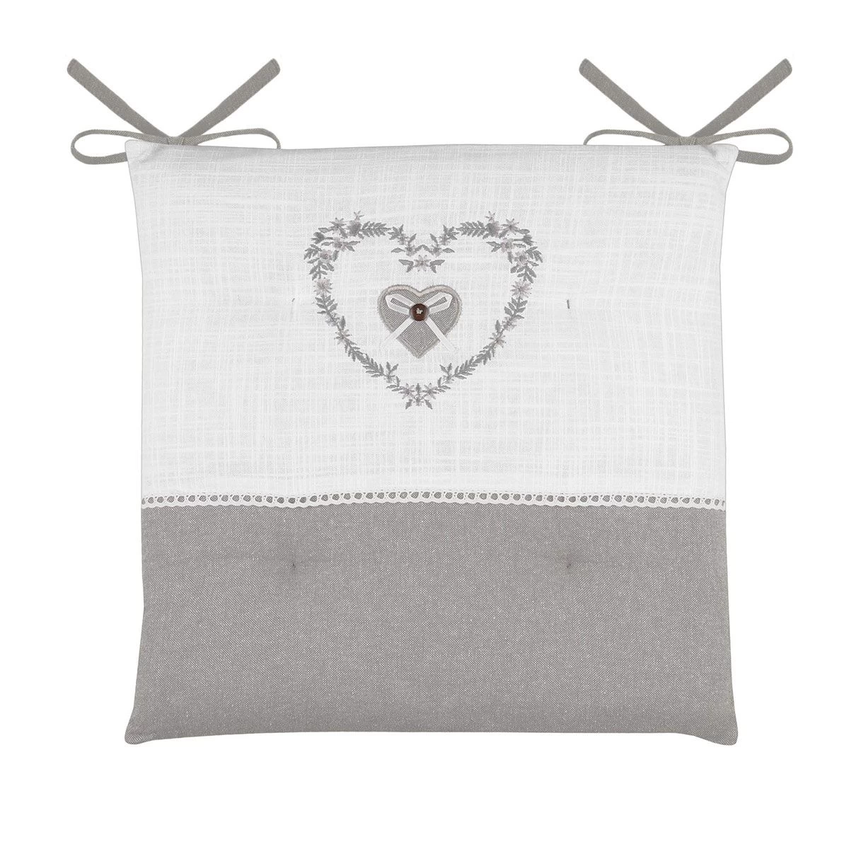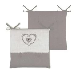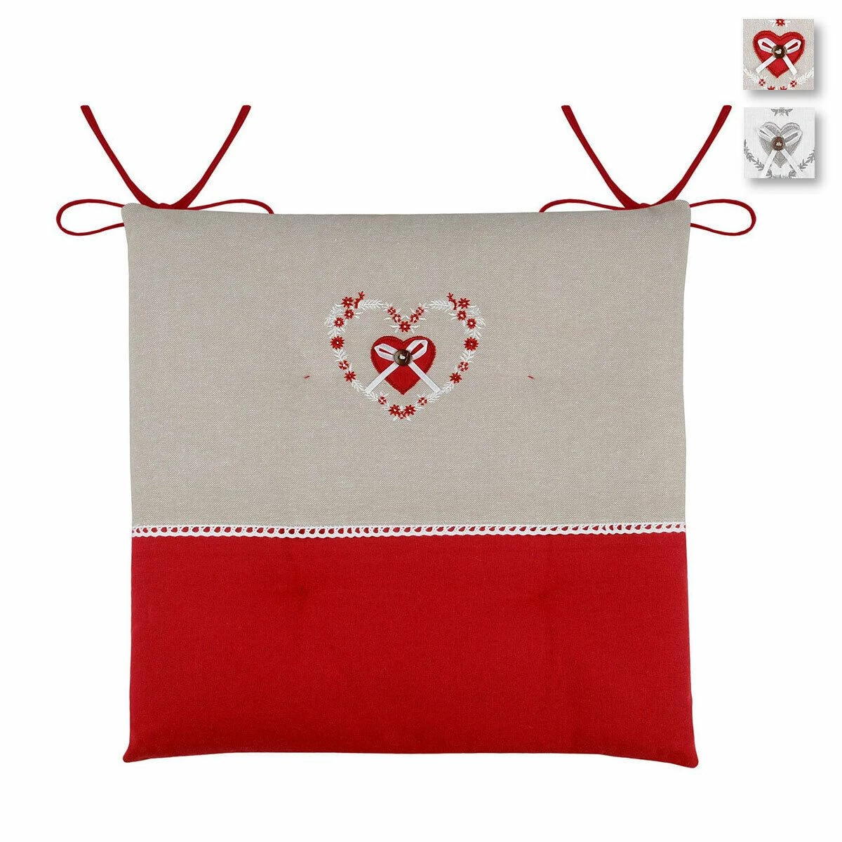 | Dettagli | La confezione contiene un cuscino coprisedia Forma quadrata Stile shabby, country e romantico con cuore ricamato centralmente Fascia in contrasto di colore e inserto in passamaneria Trapuntatura con 4 punti a grana di riso Imbottitura e seduta confortevole Pratici laccetti in coordinato di colore che permettono una perfetta aderenza alla sedia Sfoderabile tramite cerniera Coordinabile con altri articoli |