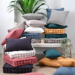 | Dettagli | La confezione contiene un cuscino da pavimento Forma quadrata Tinta unita con manico in tessuto Tessuto esterno in rasatello di cotone, morbido al tatto Trapuntatura a 4 punti Imbottitura consistente e voluminosa Facile da spostare grazie al manico Non sfoderabile |