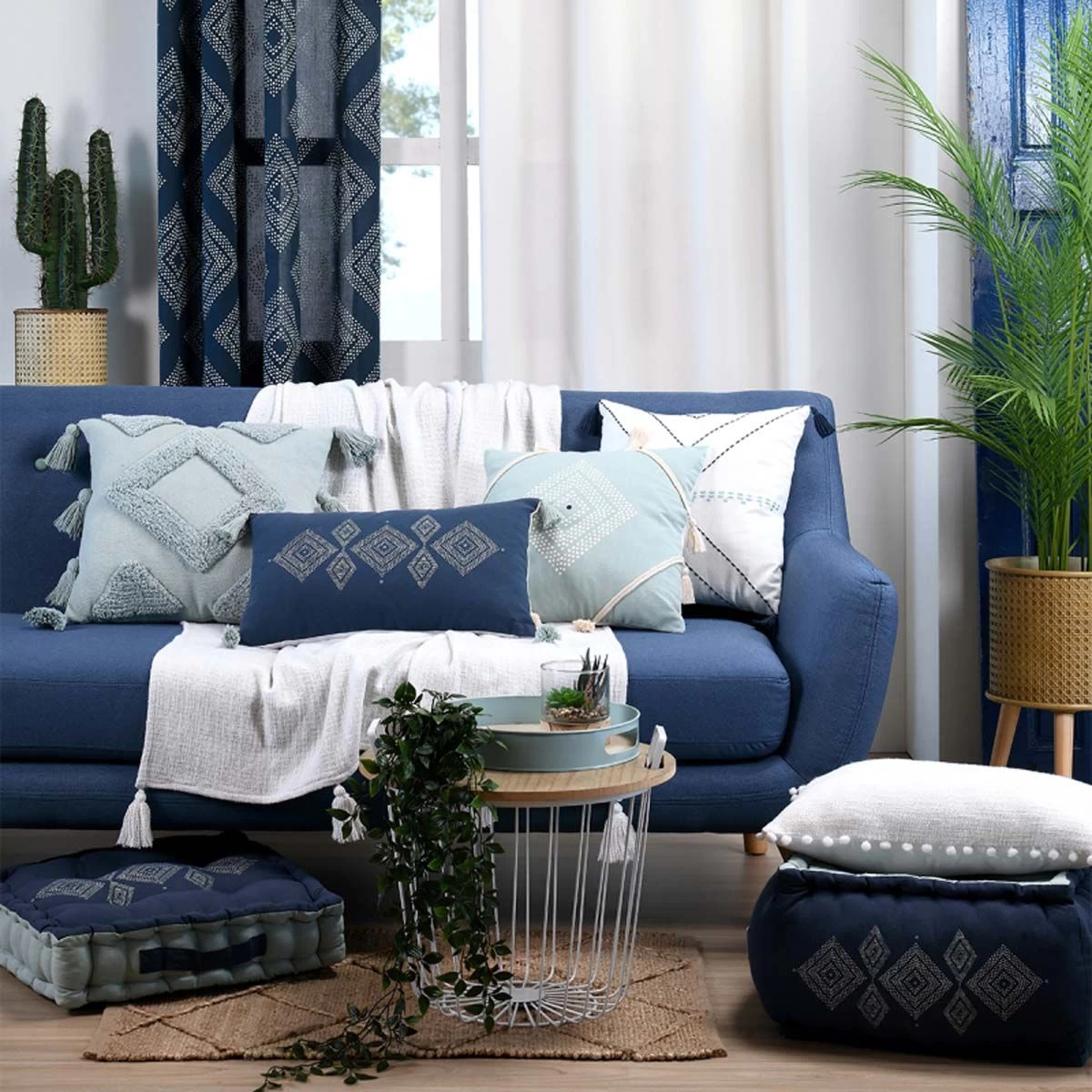 | Dettagli | La confezione contiene un cuscino da pavimento Forma quadrata Dettagli ricamati Bordo in tinta unita con manico in contrasto di colore Trapuntatura a 4 punti Imbottitura consistente e voluminosa Facile da spostare grazie al manico Non sfoderabile |