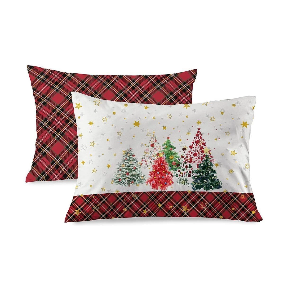 | Dettagli | La confezione contiene una federa a sacchetto per guanciale Stampa digitale natalizia ad alta definizione con alberelli, stelle dorate e motivo tartan Doubleface: stampa su entrambi i lati Morbida microfibra manopesca Confezionata in scatola Made in Italy |