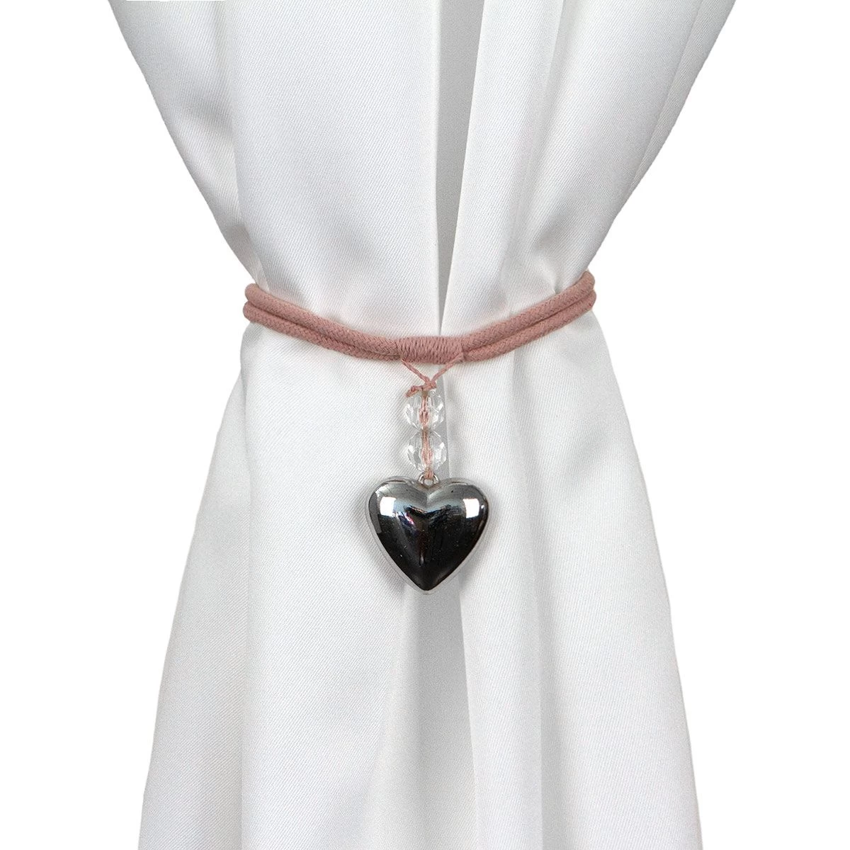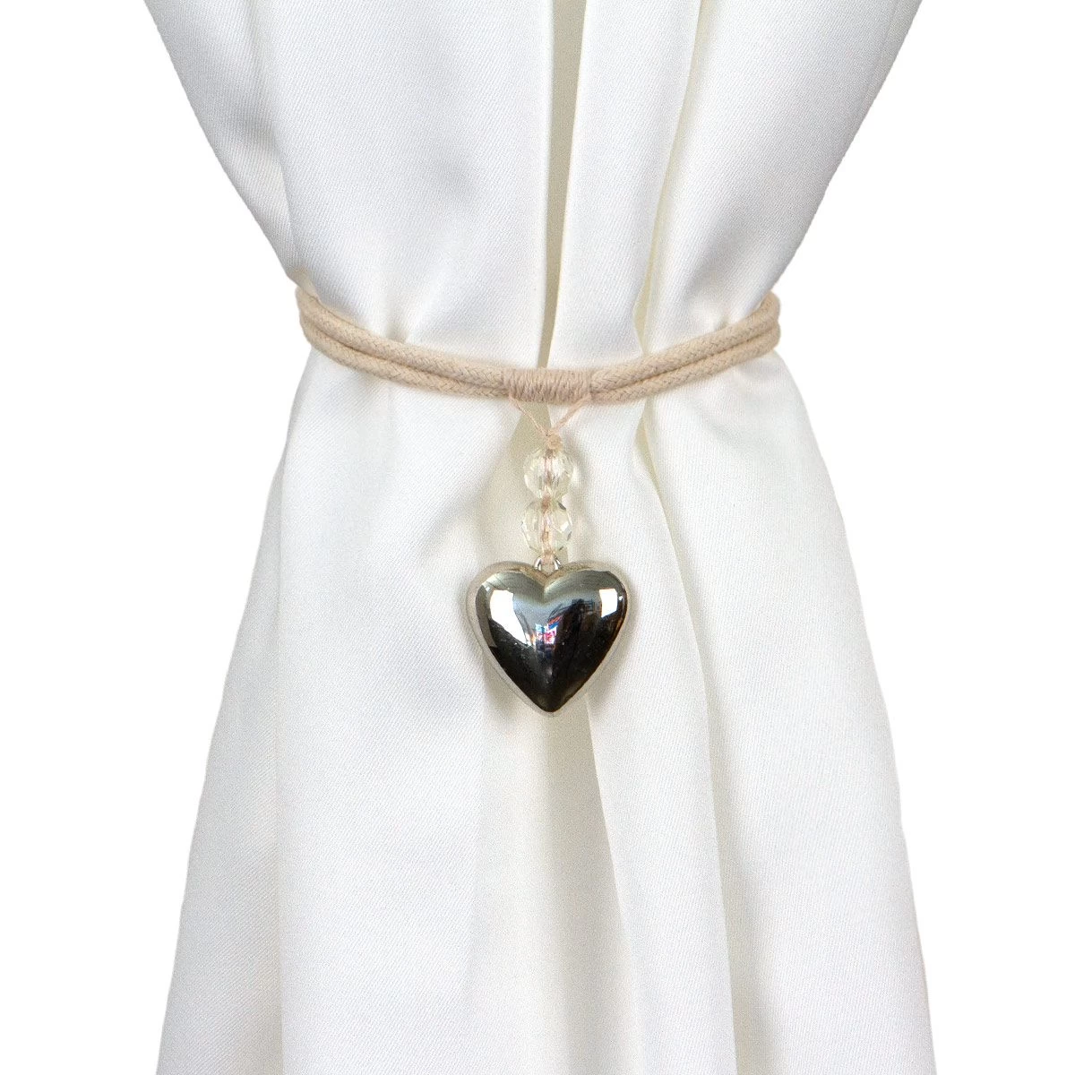 | Dettagli | La confezione contiene un fermatenda composto da: 1 nastro/laccio in corda intrecciata 1 decoro cuore in metallo con due simil cristalli Chiusura con asola Ideale per raccogliere le tende o creare drappeggi |