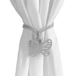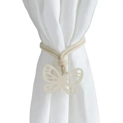 | Dettagli | La confezione contiene un fermatenda composto da: 1 nastro/laccio in corda intrecciata 1 decoro con farfalla intarsiata in legno Chiusura con asola |