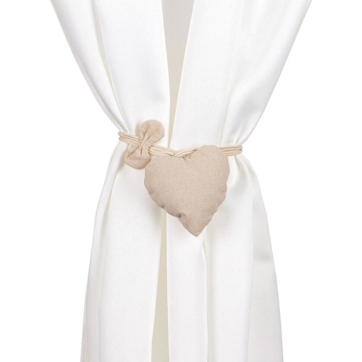 | Dettagli | La confezione contiene un fermatenda composto da: 1 nastro/laccio in corda intrecciata 1 decoro con cuore imbottito e fiocchetto Tessuto in tinta unita Applicazione in passamaneria Chiusura con asola |