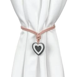 | Dettagli | La confezione contiene un fermatenda composto da: 1 nastro/laccio in corda intrecciata 1 decoro cuore in metallo con piccolo cuore sagomato in plastica trasparente Chiusura con asola Ideale per raccogliere le tende o creare drappeggi |