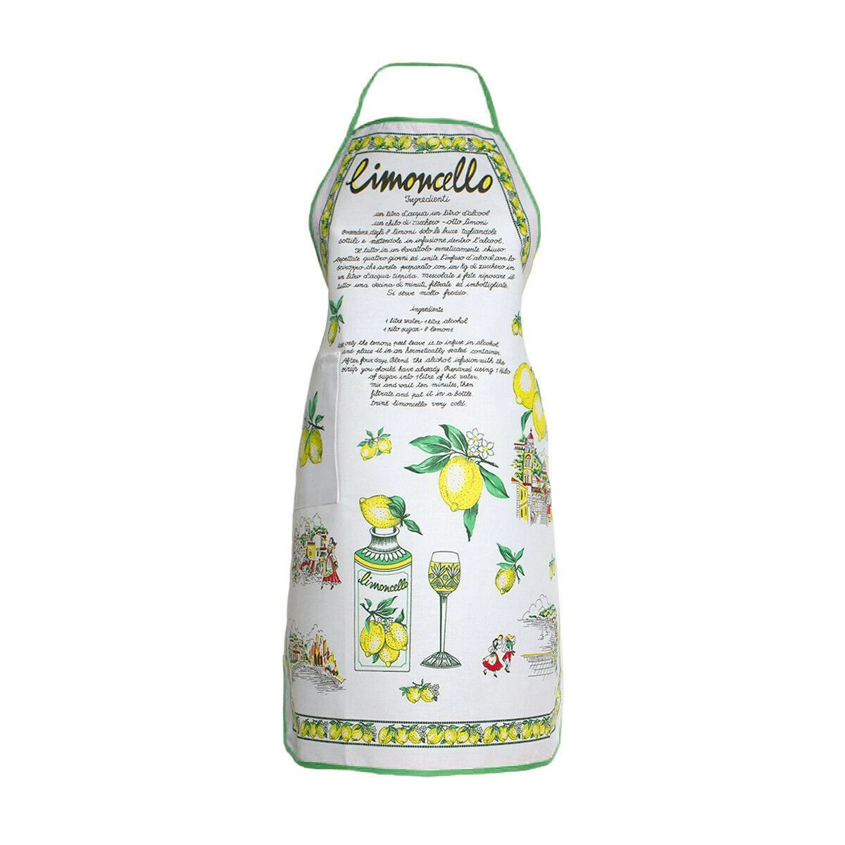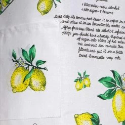 Il limoncello è un liquore dolce amato da tantissimi. Le sue origini hanno radici al Sud, precisamente a Sorrento, grazie ai suoi limoni pregiati e profumati. Ritroviamo raffigurato su questo particolare grembiule da cucina la ricetta per poterlo preparare.