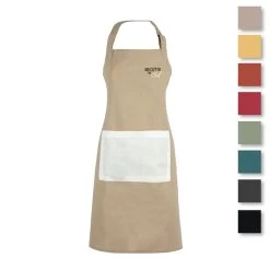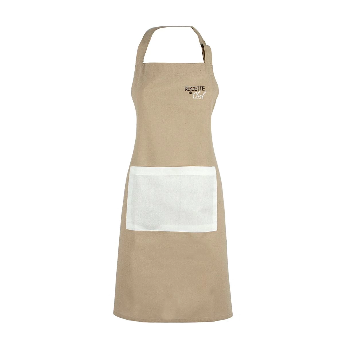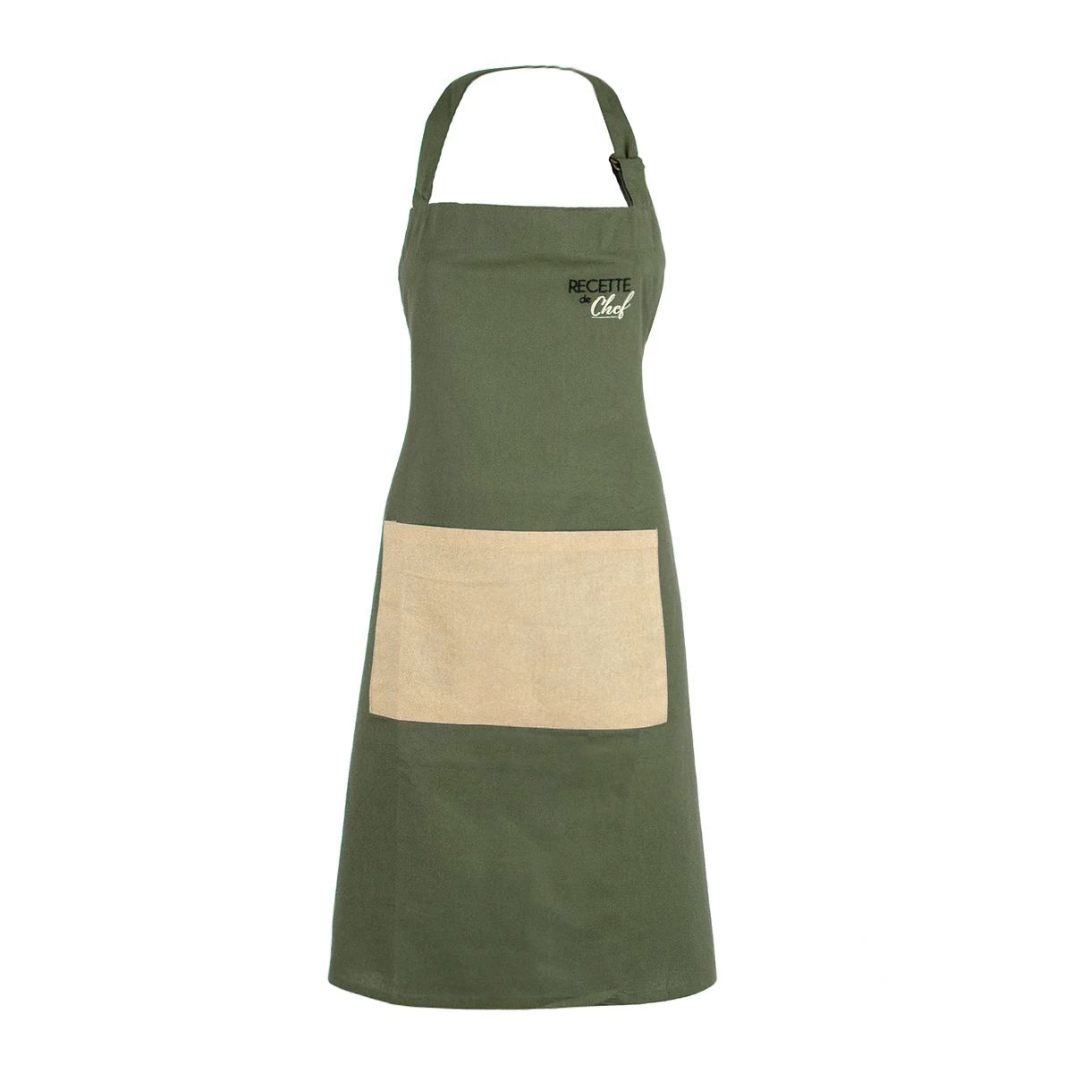 | Dettagli | La confezione contiene un grembiule da cucina Tinta unita con scritta ricamata all’altezza del petto “Recette de Chef” Tasca anteriore in contrasto di colore Dotato di laccetti in coordinato di colore Puro cotone, resistente ai numerosi lavaggi |