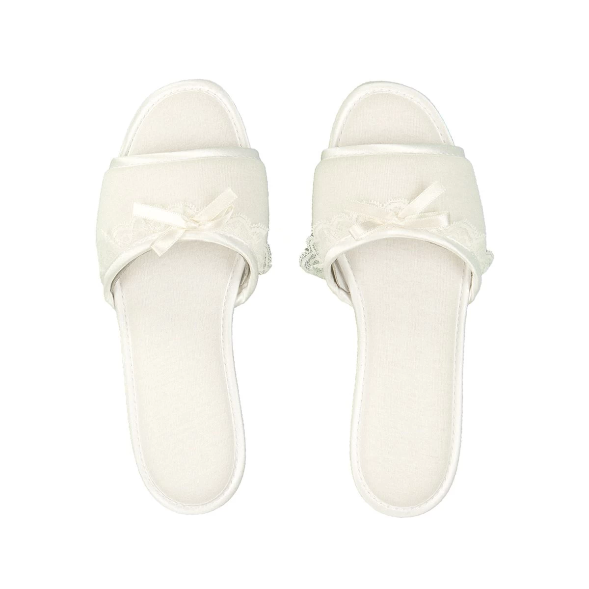 Estetica e comodità vanno di pari passo con le pantofole Allegra di Toscana Lingerie. Gli inserti in passamaneria con fiocchetto anteriore aggiungono un tocco elegante che le rende perfette anche da utilizzare per una sposa.