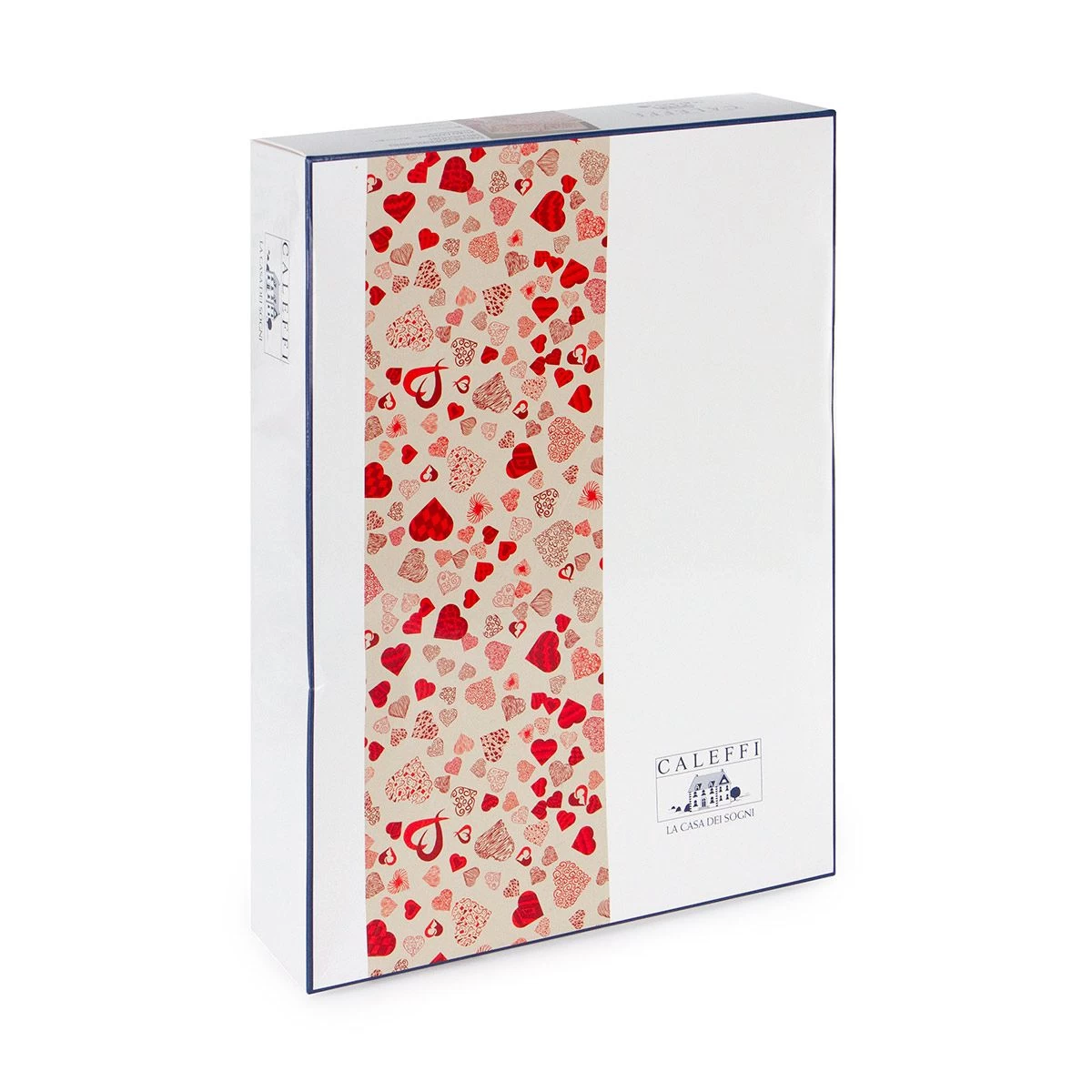 | Dettagli | La confezione contiene una parure copripiumino per letto matrimoniale composta da: 1 sacco copripiumino 2 federe a sacchetto Federe con stampa piazzata doubleface Stampa digitale 3D ad altissima definizione con cuori stilizzati Caleffi garantisce che cotone e coloranti sono privi di sostanze nocive per la salute e l’ambiente Confezionata in scatola |