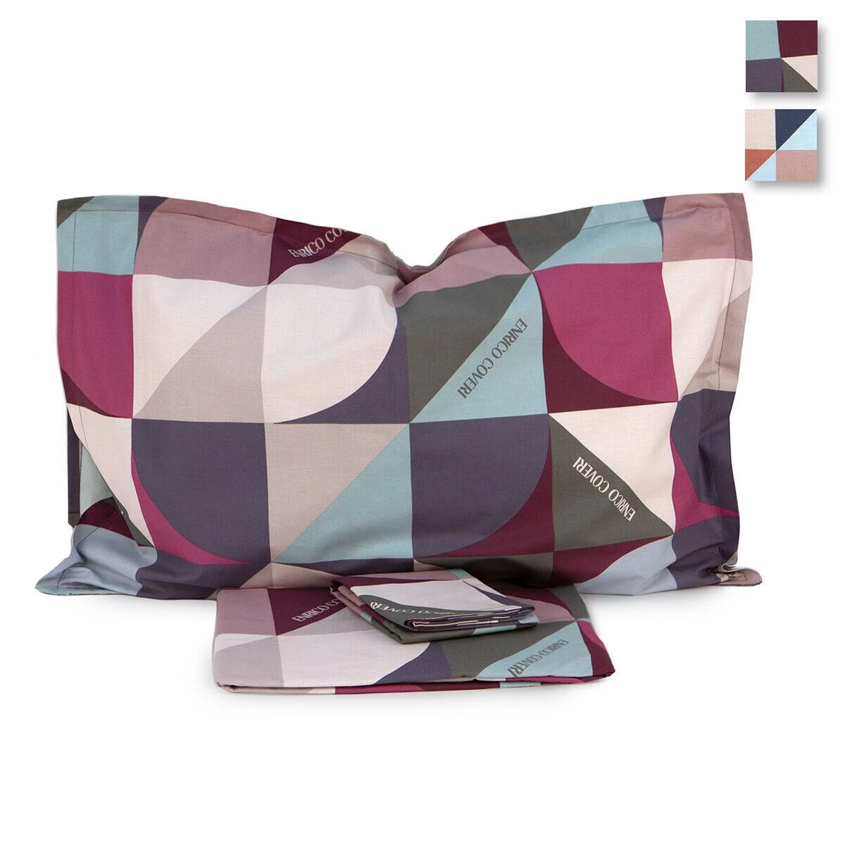 | Dettagli | La confezione contiene una parure copripiumino composta da: 1 sacco copripiumino stampato 2 federe a sacchetto in coordinato Stampa con motivo geometrico Percalle di purissimo cotone, liscio, morbido, fresco e naturale |
