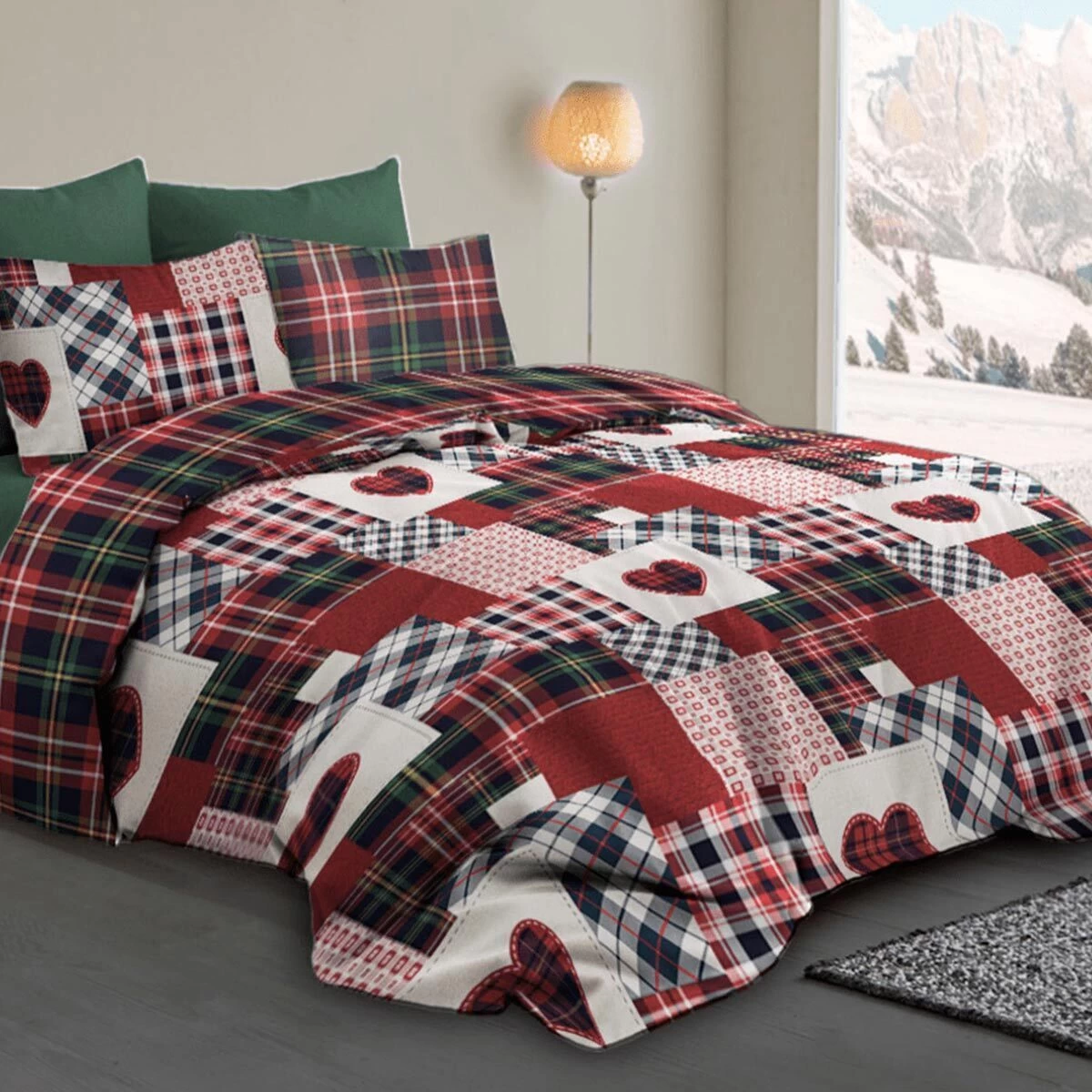 La parure copripiumino Saint Veran di Daunex double face della collezione Infinity presenta un doppio stile: da un lato il tipico tartan scozzese e dall’altro una stampa patchwork tirolese; un capo che si adatta ad ogni tipo di arredo in camera da letto.