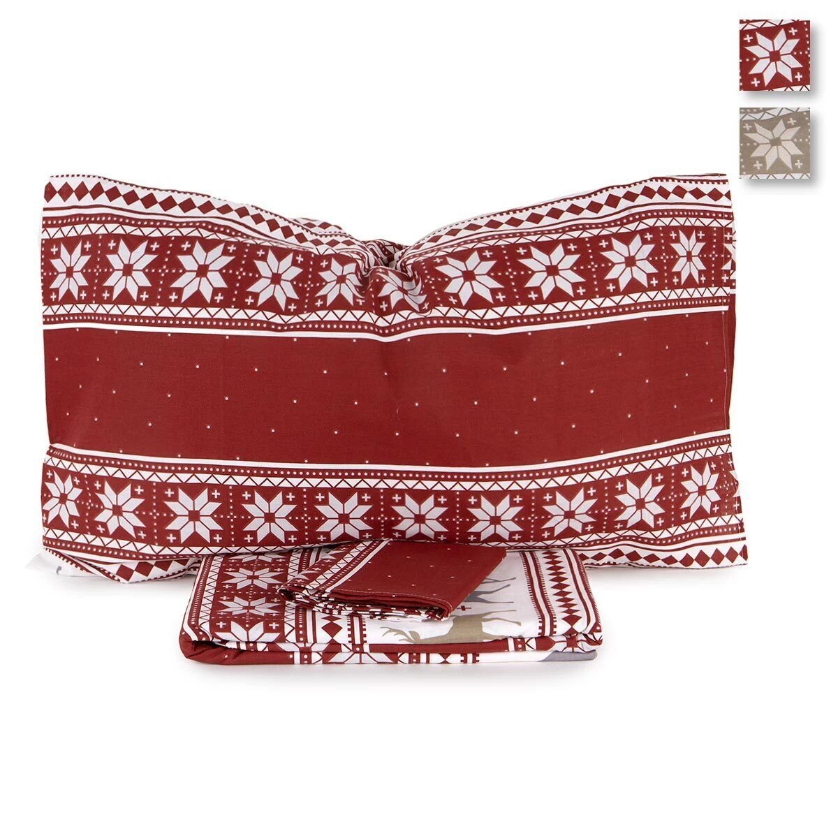 | Dettagli | La confezione contiene una parure copripiumino composta da: 1 sacco copripiumino 2 federe a sacchetto per la misura matrimoniale mentre 1 federa per la misura singola e una piazza e mezza Motivo natalizio con neve e renne Morbido e puro cotone naturale Certificato OEKO-TEX che l’assenza di sostanze nocive per l’uomo e l’ambiente Designed in Italy |