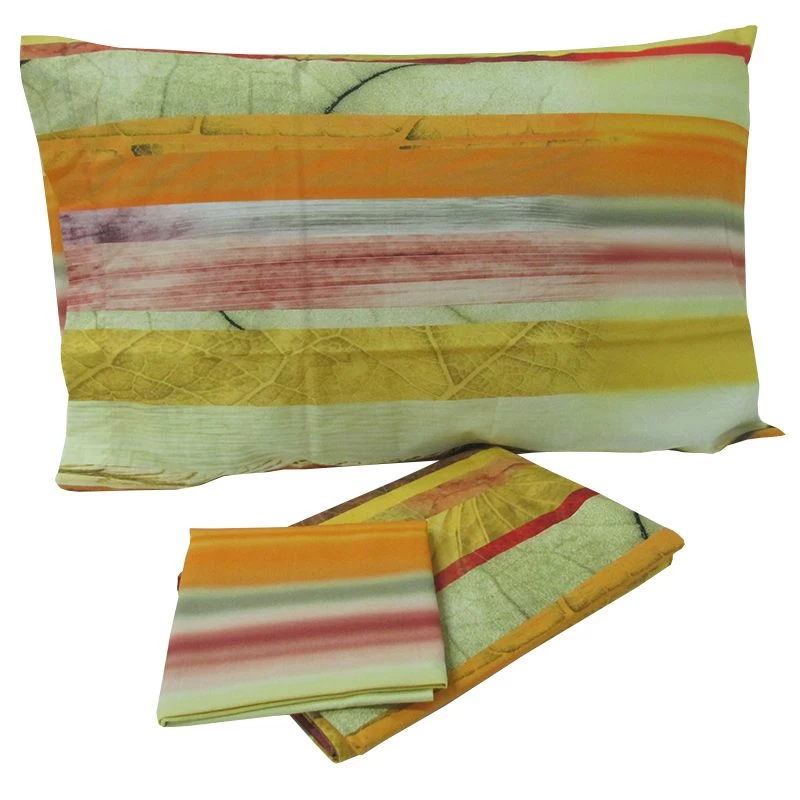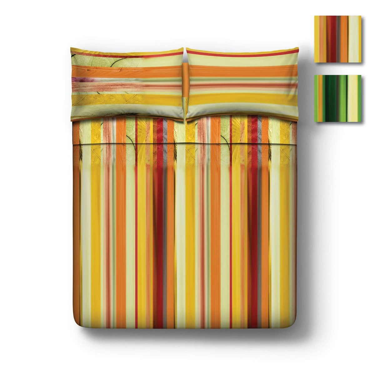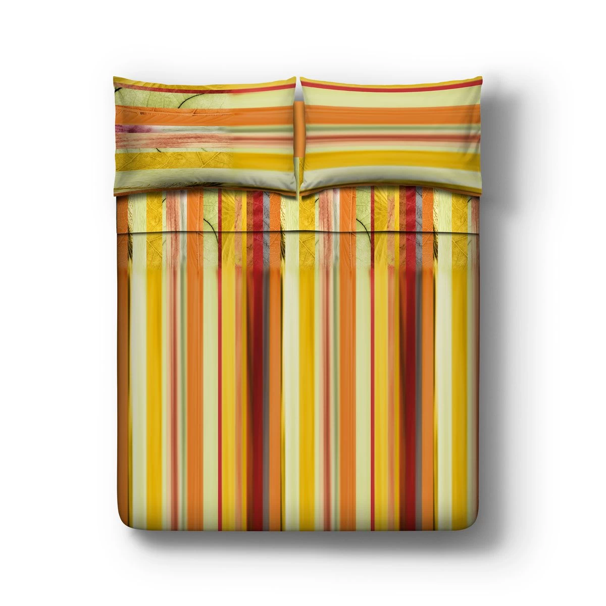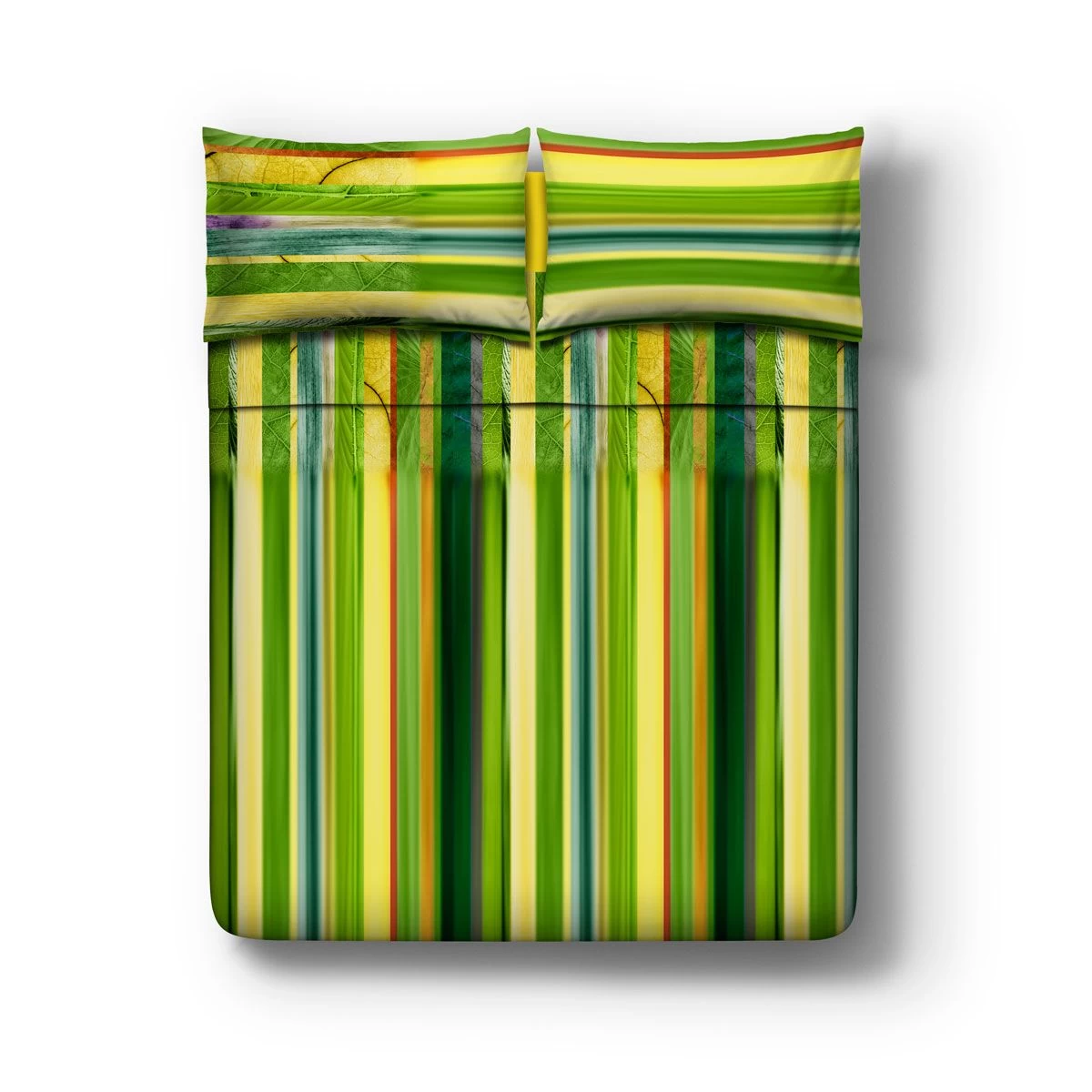 E’ come ritrovarsi a guardare attraverso una lente d’ingrandimento. Questo è l’effetto che si ha vedendo questa meravigliosa parure di lenzuola. La stampa riproduce fedelmente uno scatto fotografico e sono estremamente visibili tutti i dettagli che l’artista voleva farci notare. Tutte le innervature, la trama della foglia e le sfumature di colore, tutto si dipana davanti ai nostri occhi. Le tinte sono forti e sgargianti nei toni dell’arancione e del verde. Il tessuto utilizzato per la sua realizzazione è il cotone, materiale naturale per eccellenza in accordo con le ultime tendenze eco-chic.