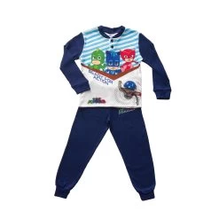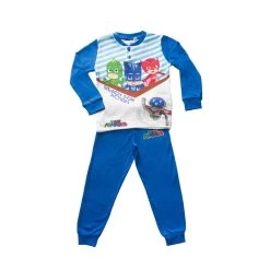 | Dettagli | La confezione contiene un pigiama per bambino composto da: 1 maglia stampata girocollo serafino a due bottoni e polsini elasticizzati 1 pantalone tinta unita con elastico in vita e polsini elasticizzati Stampa con il trio dei Superpigiamini PJ Masks Dettagli in contrasto di colore Morbido caldo cotone adatto al periodo invernale Prodotto dalla licenziataria ufficiale del marchio |