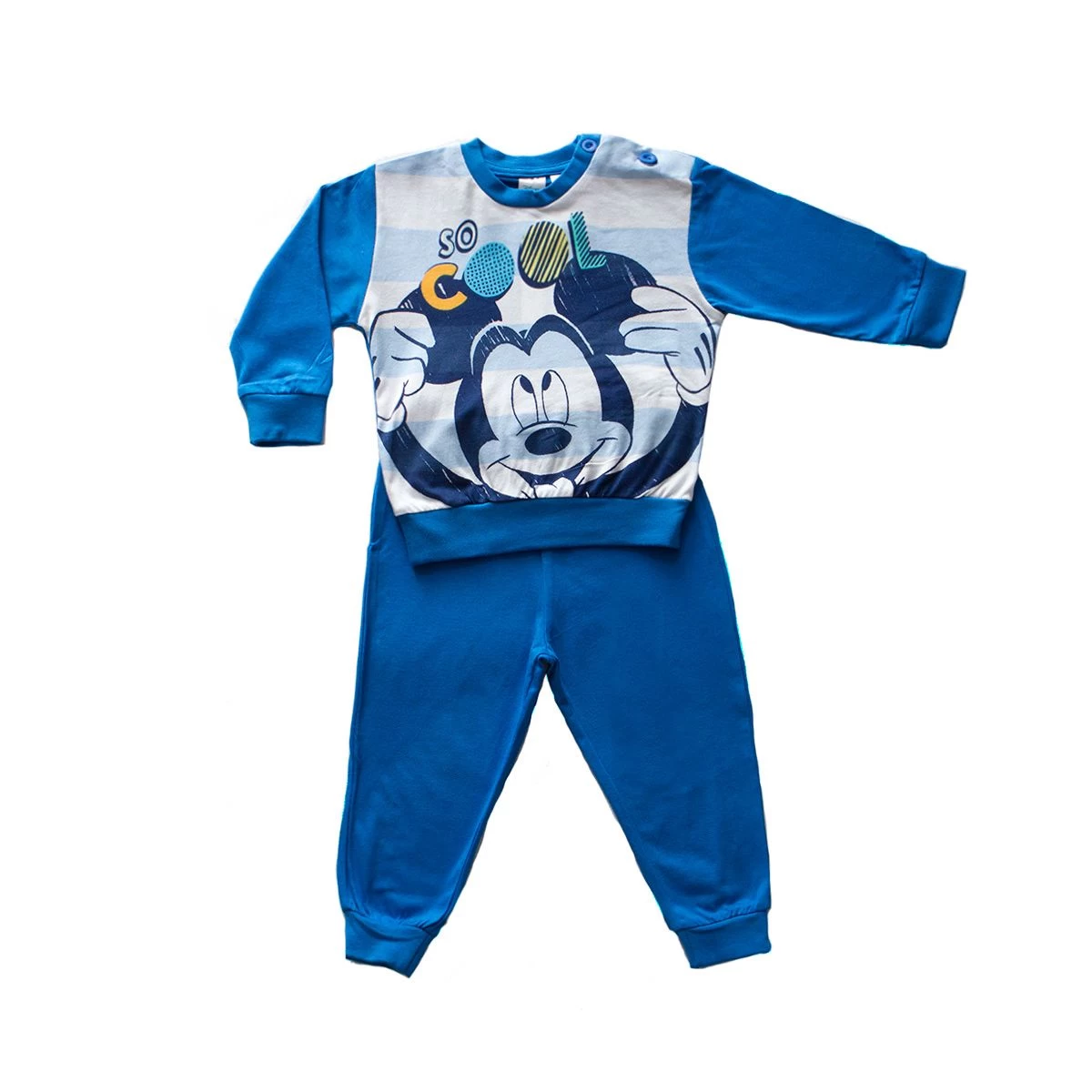 | Dettagli | La confezione contiene un pigiama per bambino in cotone composto da: Una maglia stampata manica lunga con bottoni sulla spalla e polsini elasticizzati Un pantalone tinta unita con elastico in vita e comodi polsini elasticizzati Stampa ispirata a Topolino Motivo maglietta con righe in contrasto di colore Prodotto dalla licenziataria ufficiale del brand |