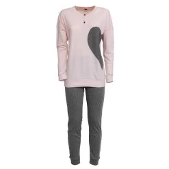 Il pigiama per donna in caldo cotone di questa collezione è comodo e pratico. La maxi maglia con decoro di cuore laterale non aderisce al corpo ma lo lascia libero nei momenti in modo tale che il sonno non sia costretto.