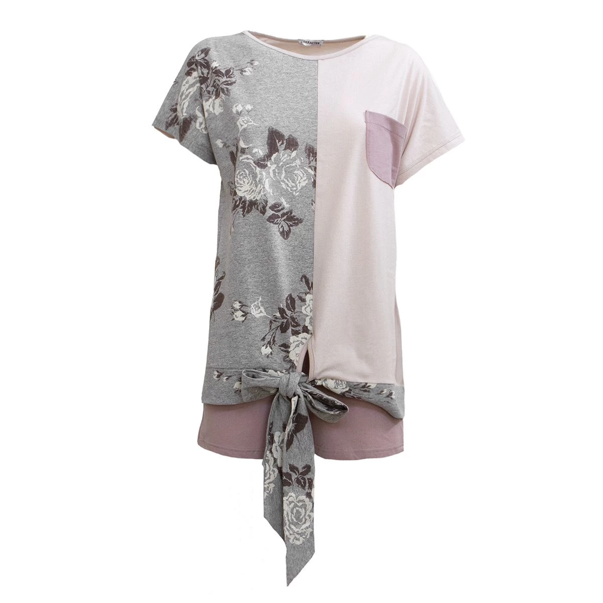 | Dettagli | La confezione contiene un pigiama da donna composto da: 1 maglia a mezza manica stampata girocollo con nastro in stoffa all’estremità per creare un fiocco 1 pantaloncino corto tinta unita con elastico in vita Cotone fresco e leggero adatto al periodo estivo Confezionato in una scatola stampata |
