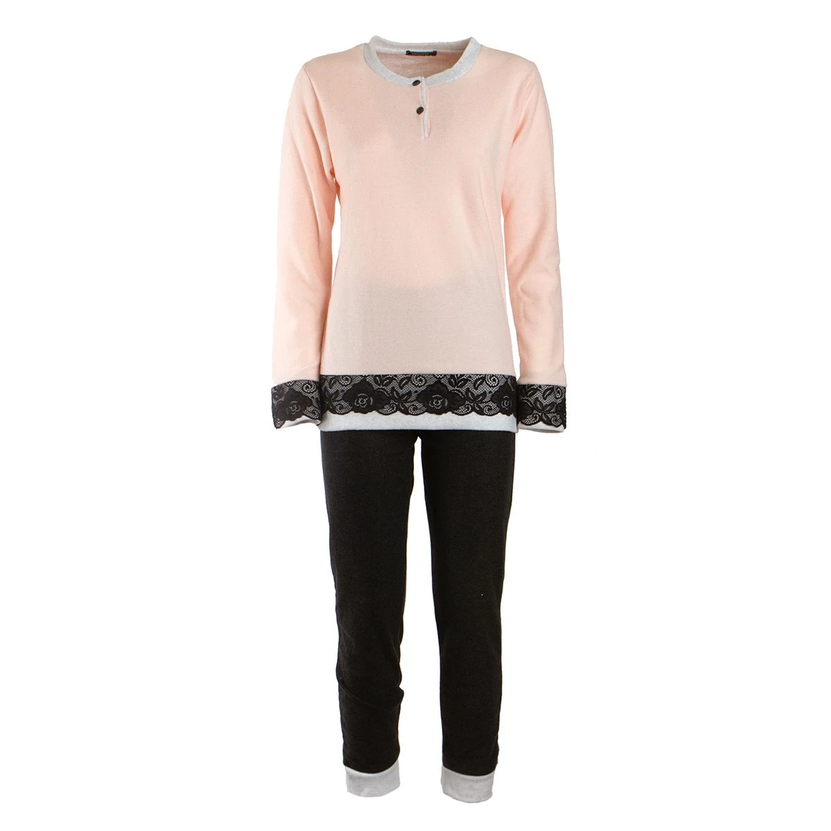 | Dettagli | La confezione contiene un pigiama da donna composto da: 1 maglia manica lunga scollo serafino, tinta unita con dettagli in pizzo 1 pantalone lungo tinta unita con elastico in vita Maglia e pantalone hanno i polsini elasticizzati Morbido e caldo punto milano, ideale per il periodo invernale Confezionato in una scatola stampata Made in Italy |
