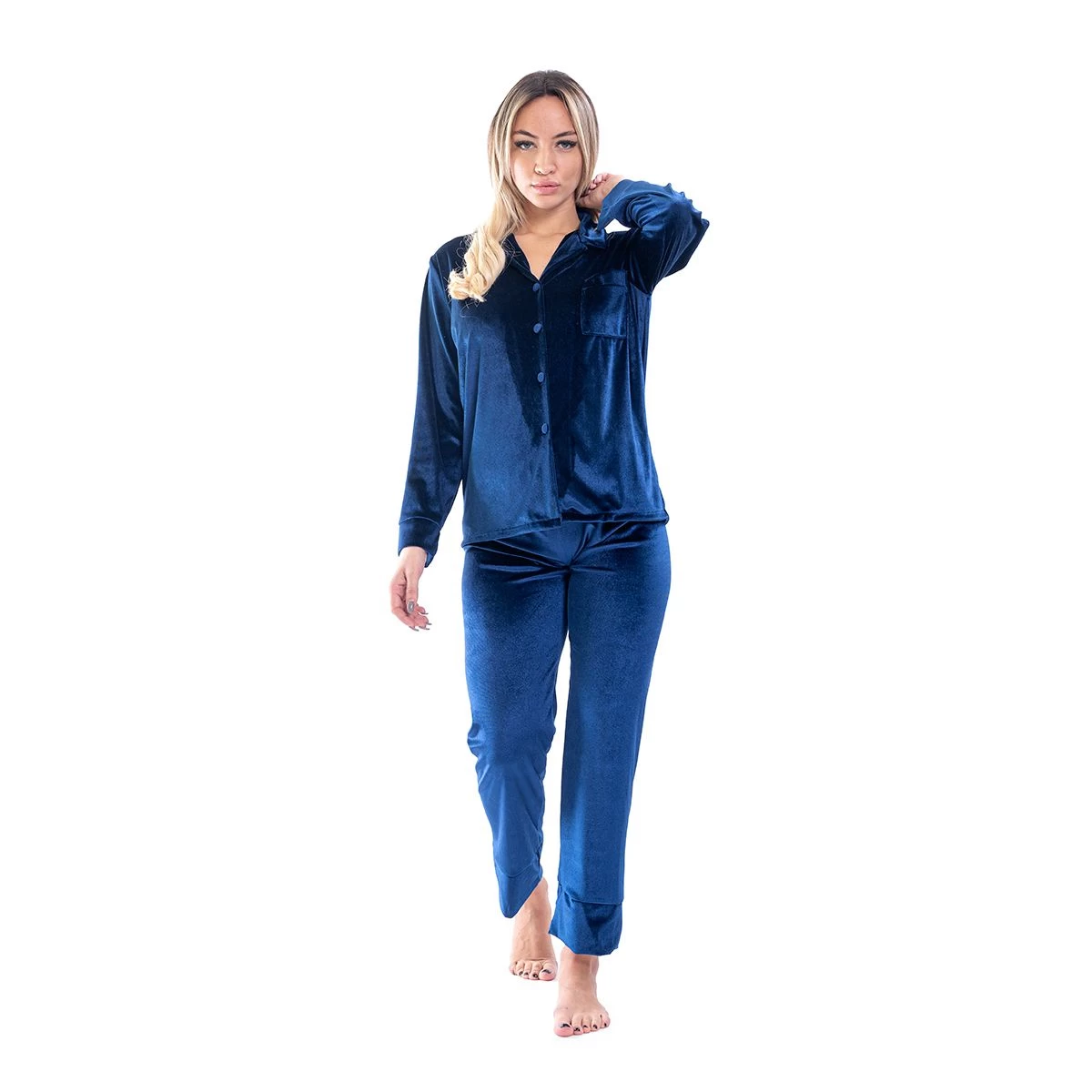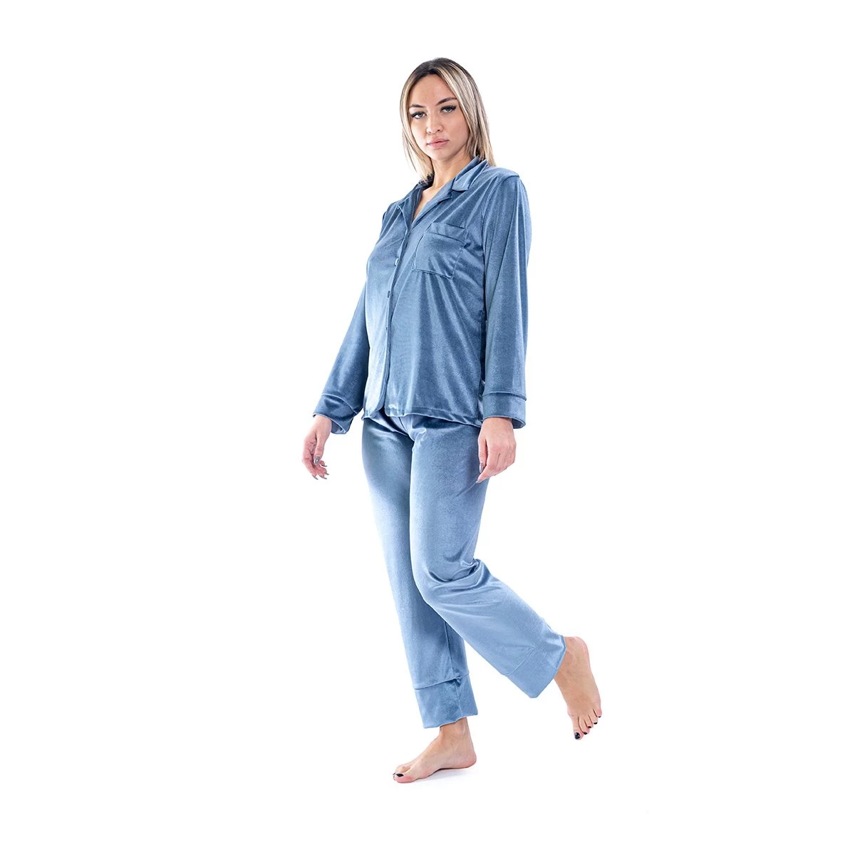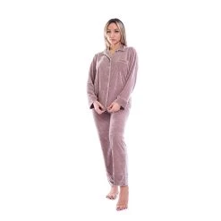 | Dettagli | La confezione contiene un pigiama da donna composto da: 1 giacca aperta con bottoncini, collo a revers e taschino anteriore 1 pantalone lungo con elastico in vita Tinta unita Ideale per il periodo invernale Made in Italy |