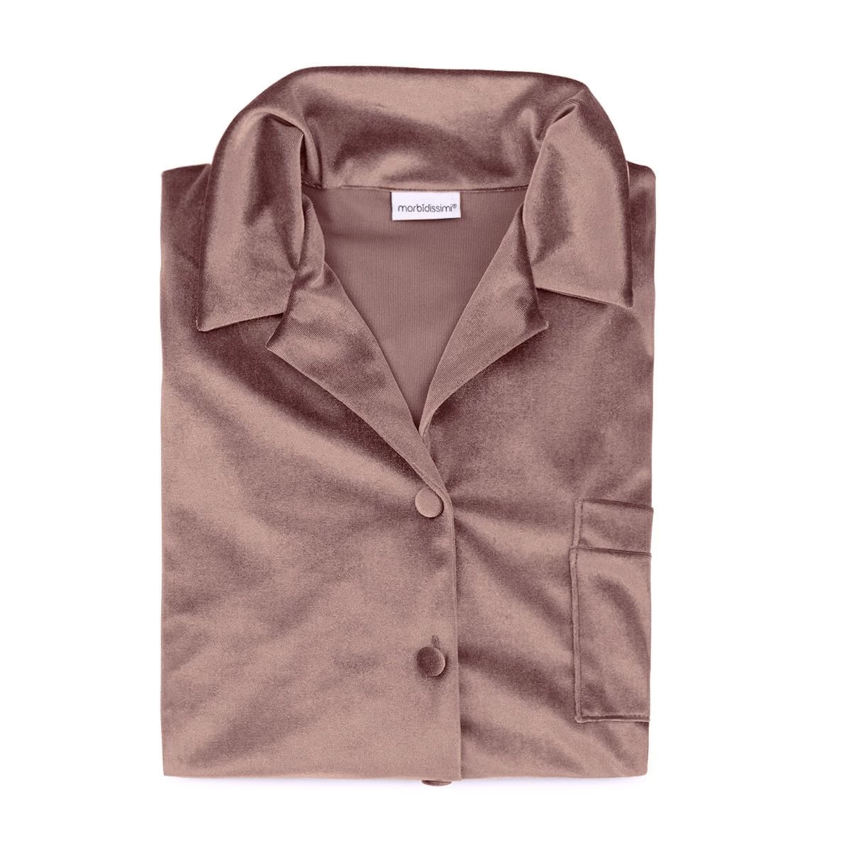Confortevole ma allo stesso tempo elegante, è il pigiama in ciniglia firmato Morbidissimi. Il morbido tessuto fa sì che questo capo scenda in modo delicato appoggiandosi sul corpo, garantendo grande comodità ed un tepore ideale.